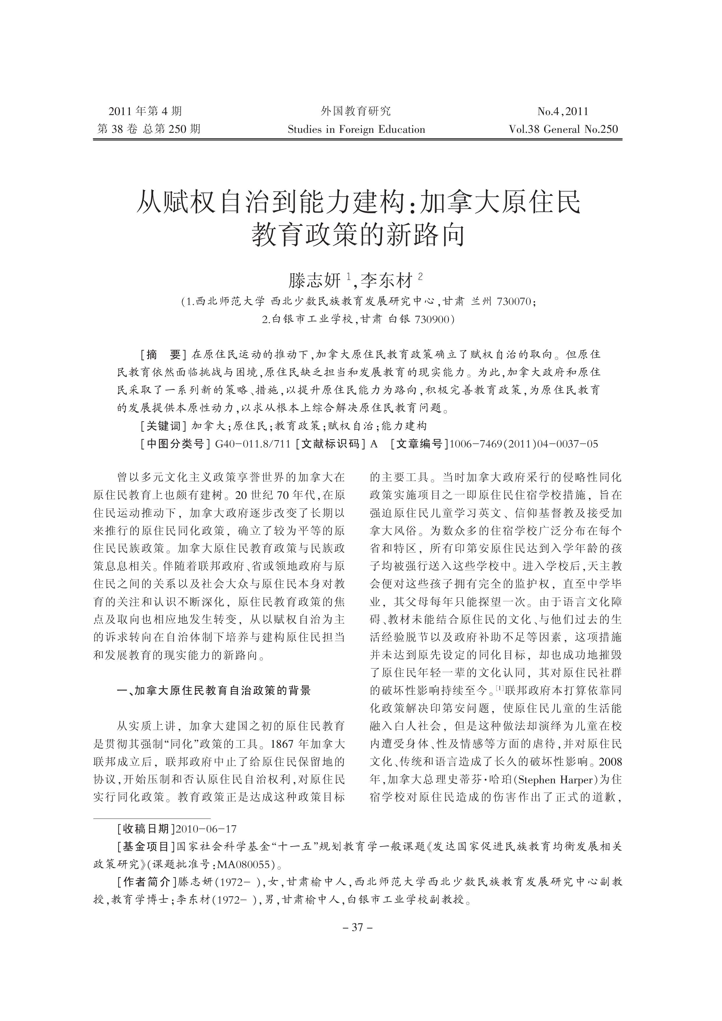 从赋权自治到能力建构_加拿大原住民教育政策的新路向(滕志妍 李东材)
