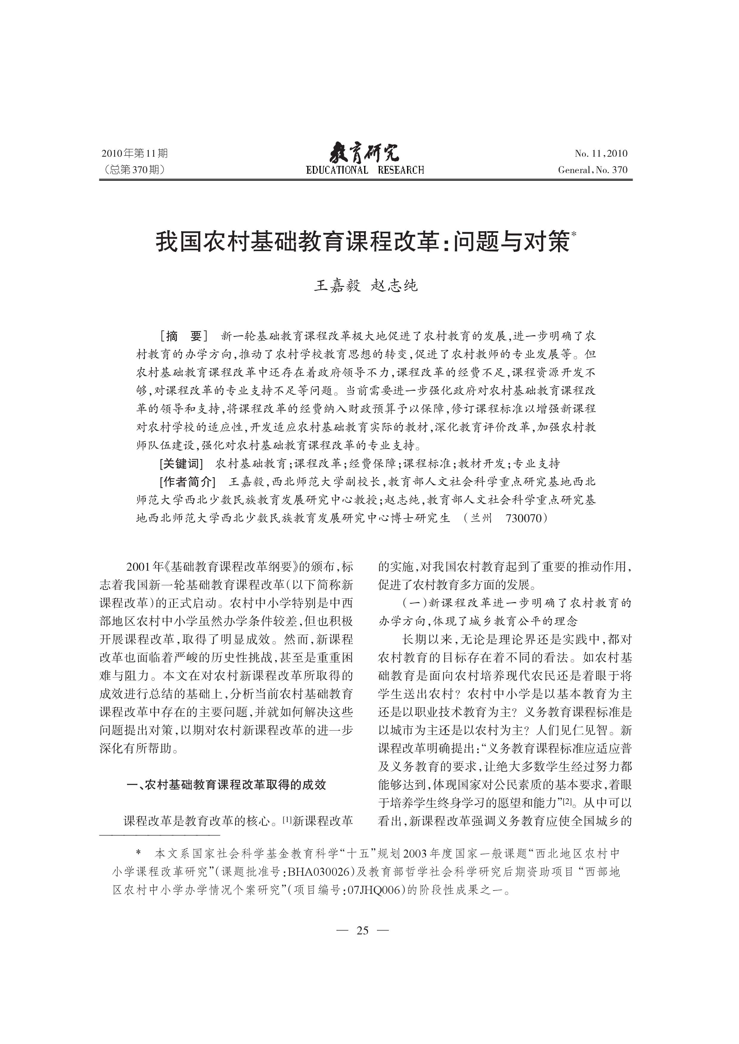 我国农村基础教育课程改革_问题与对策(王嘉毅 赵志纯)