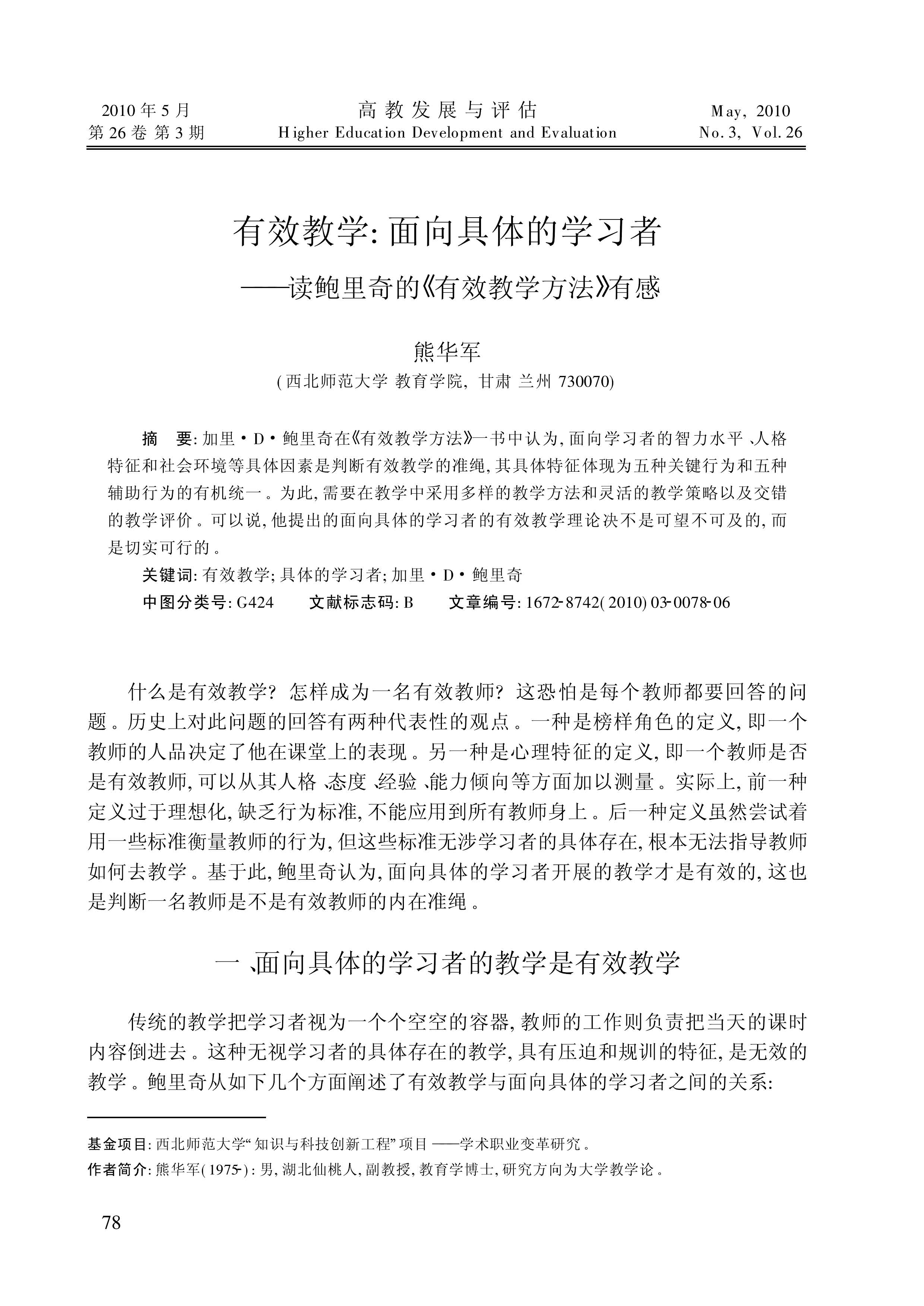 有效教学_面向具体的学习者_读鲍里奇的_有效教学方法_有感(熊华军)