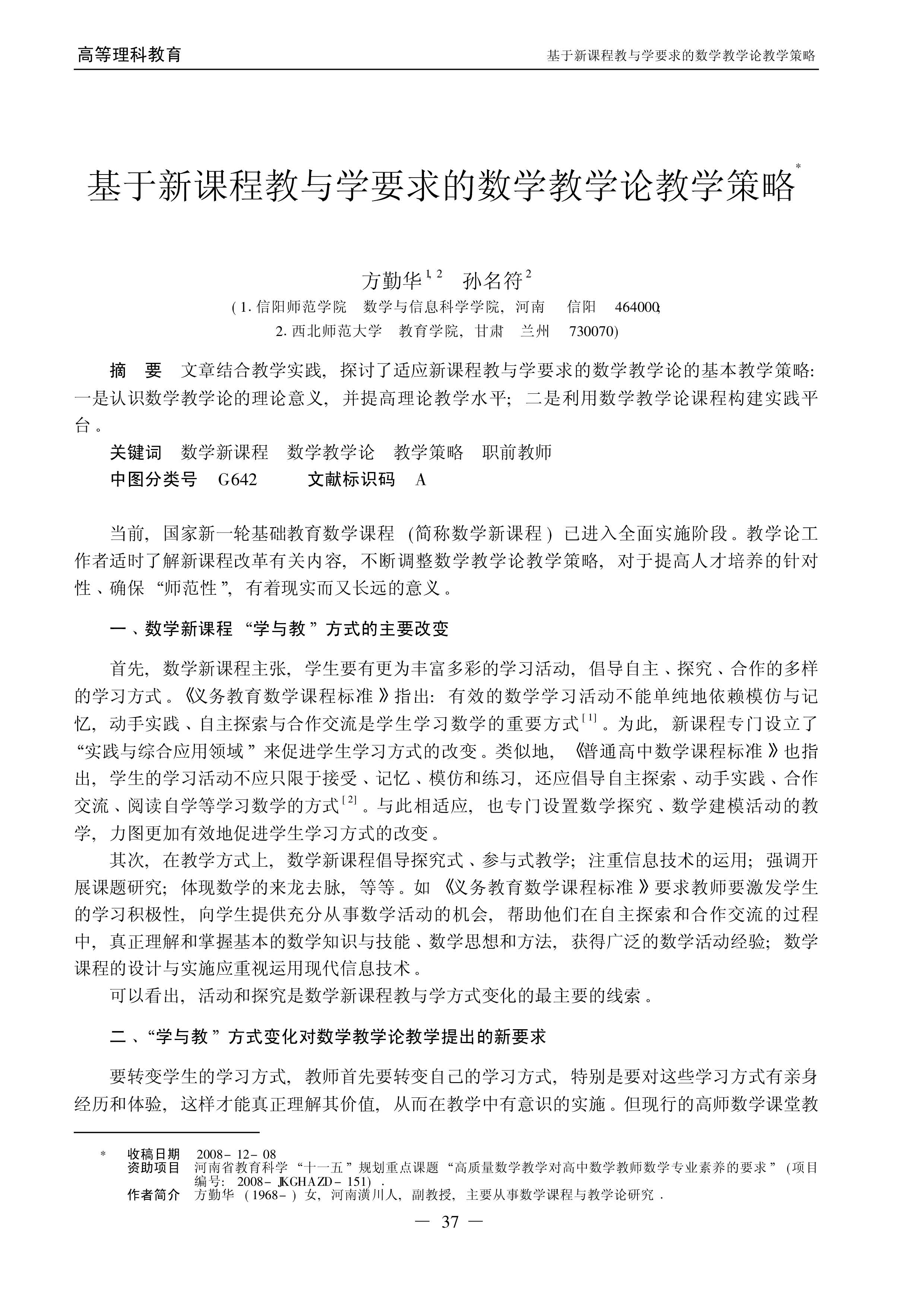 基于新课程教与学要求的数学教学论教学策略(方勤华 孙明符)