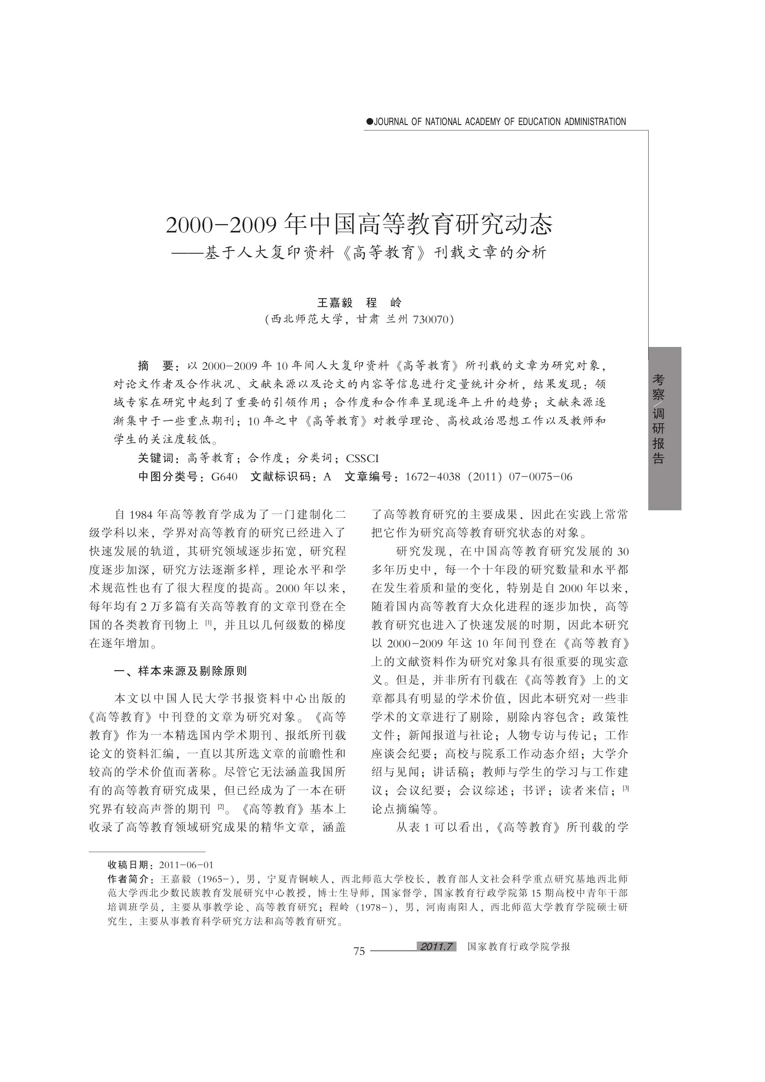 2000_2009年中国高等教育研究动态_基于人大复印资料_高等教育_刊载文章的(王嘉毅 程岭)
