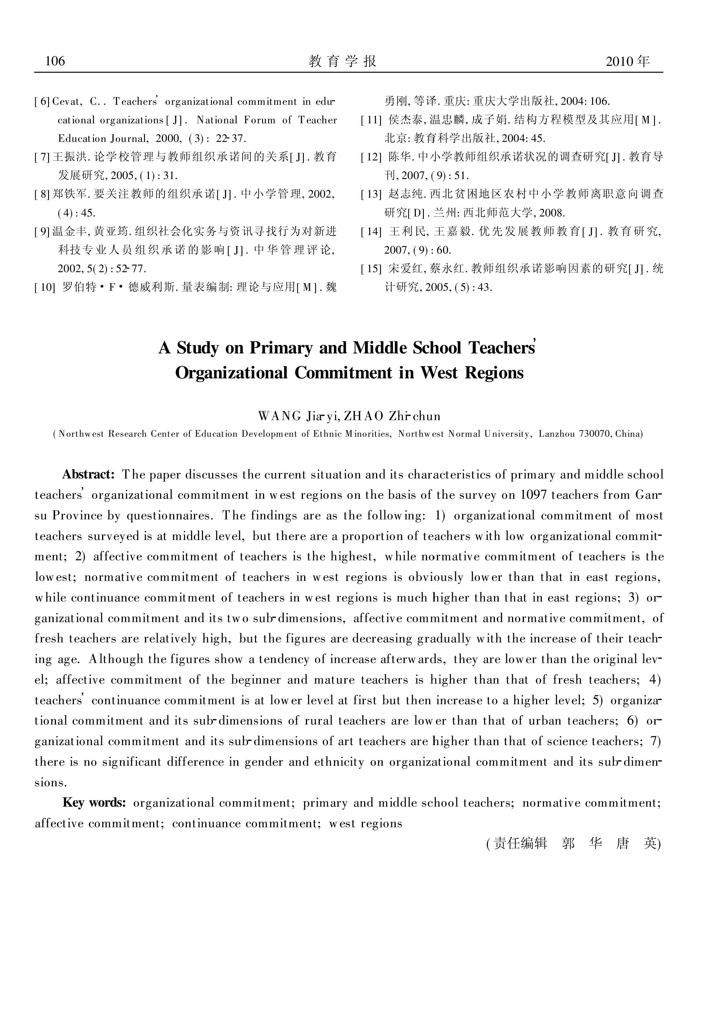 西部地区中小学教师组织承诺调查研究(王嘉毅 赵志纯)