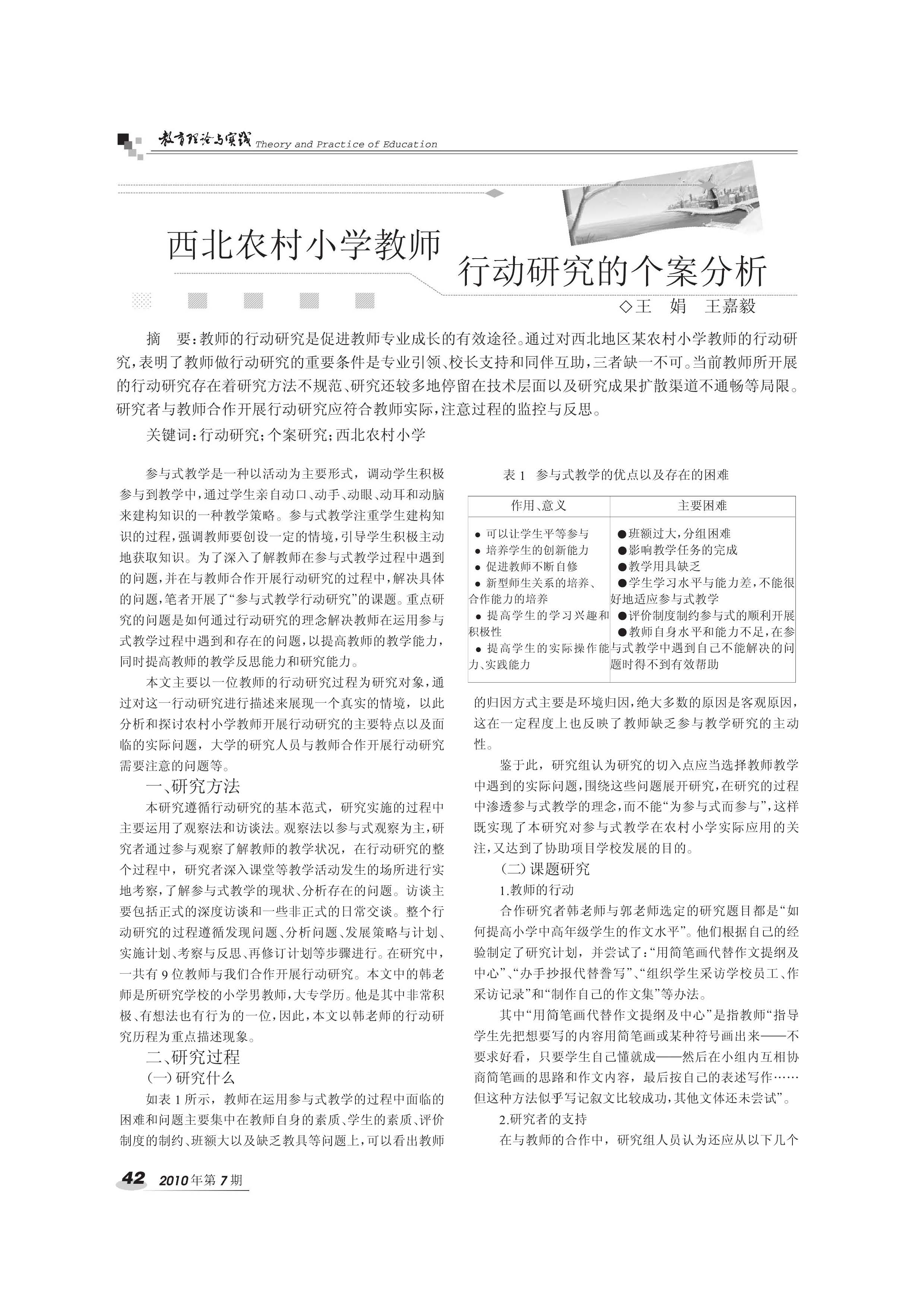 西北农村小学教师行动研究的个案分析(王娟 王嘉毅)