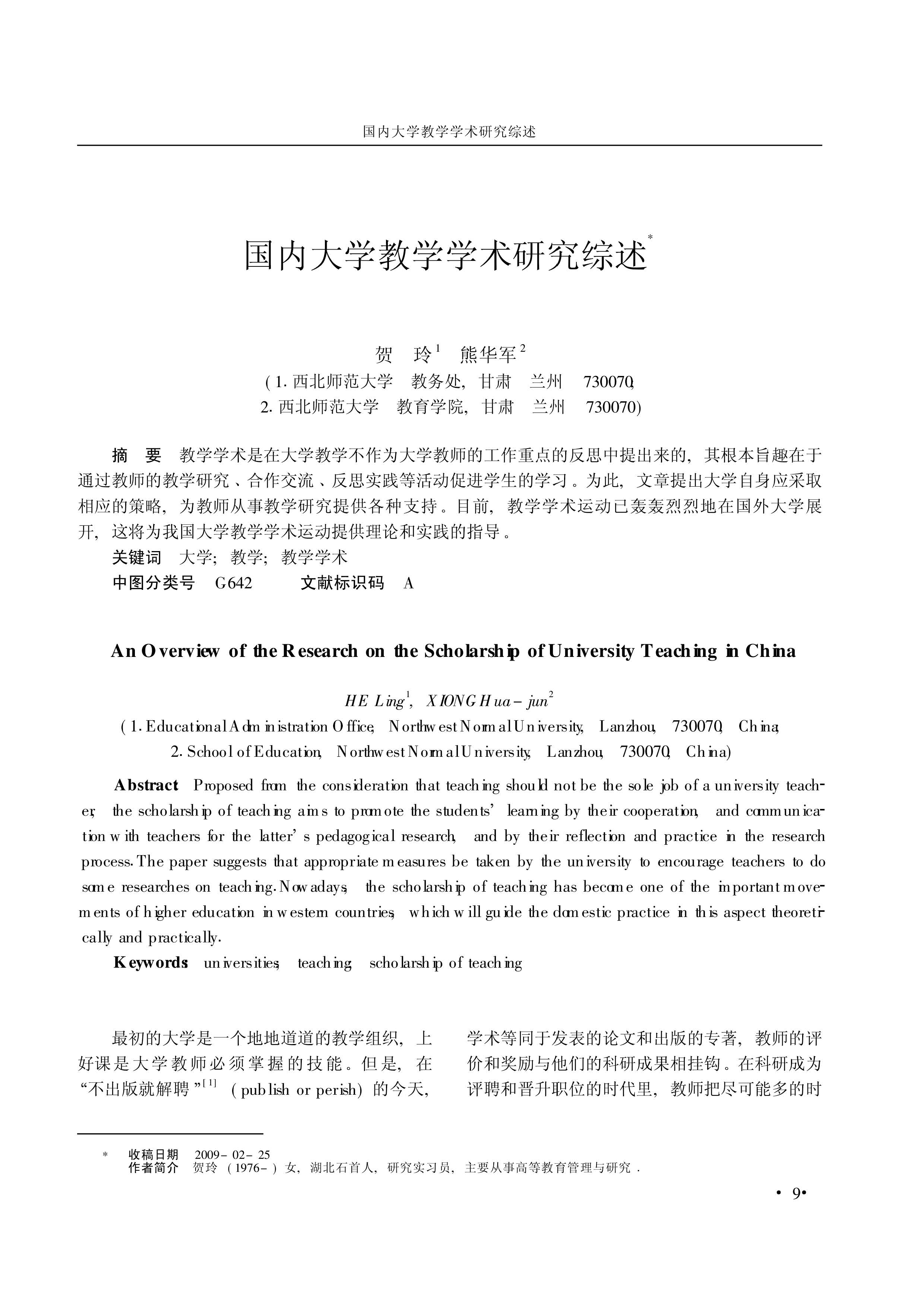 国内大学教学学术研究综述(贺玲 熊华军)