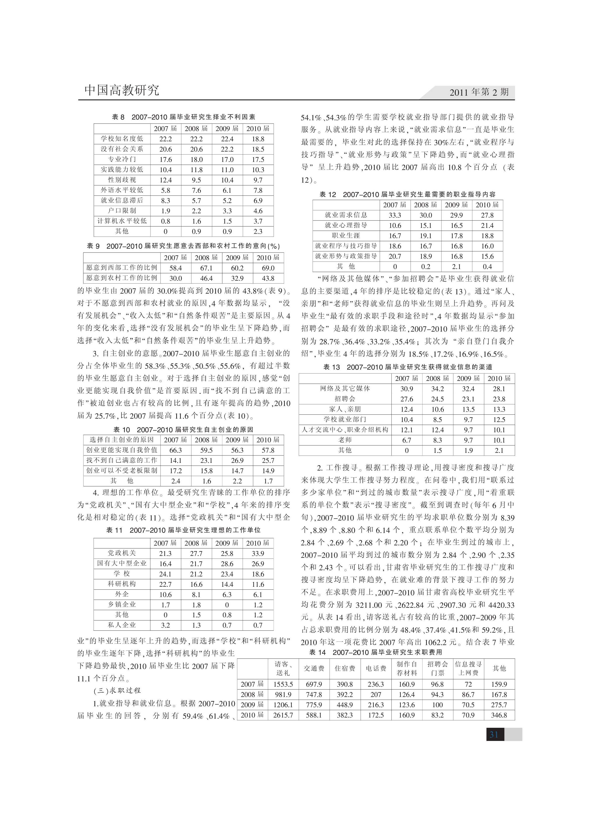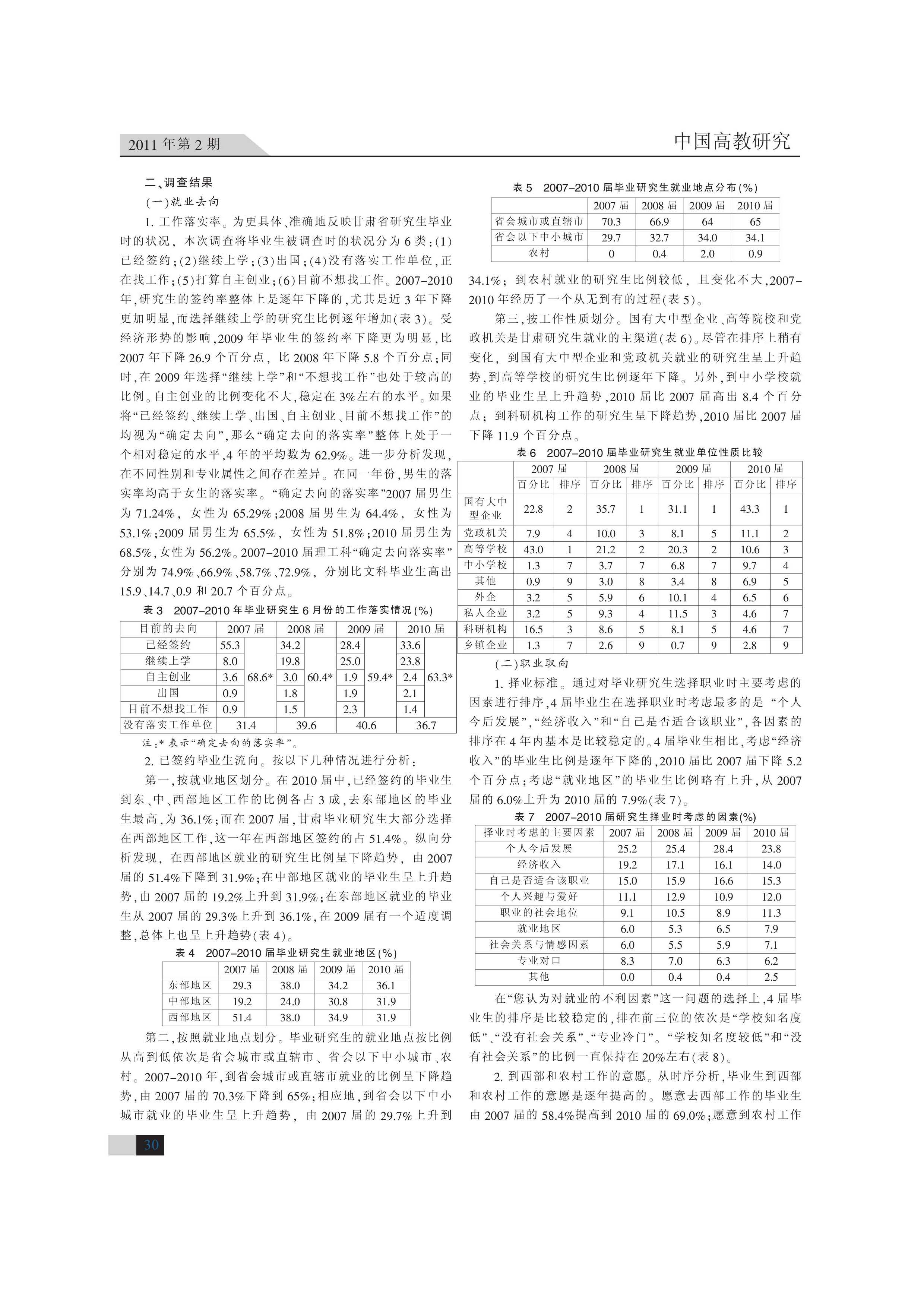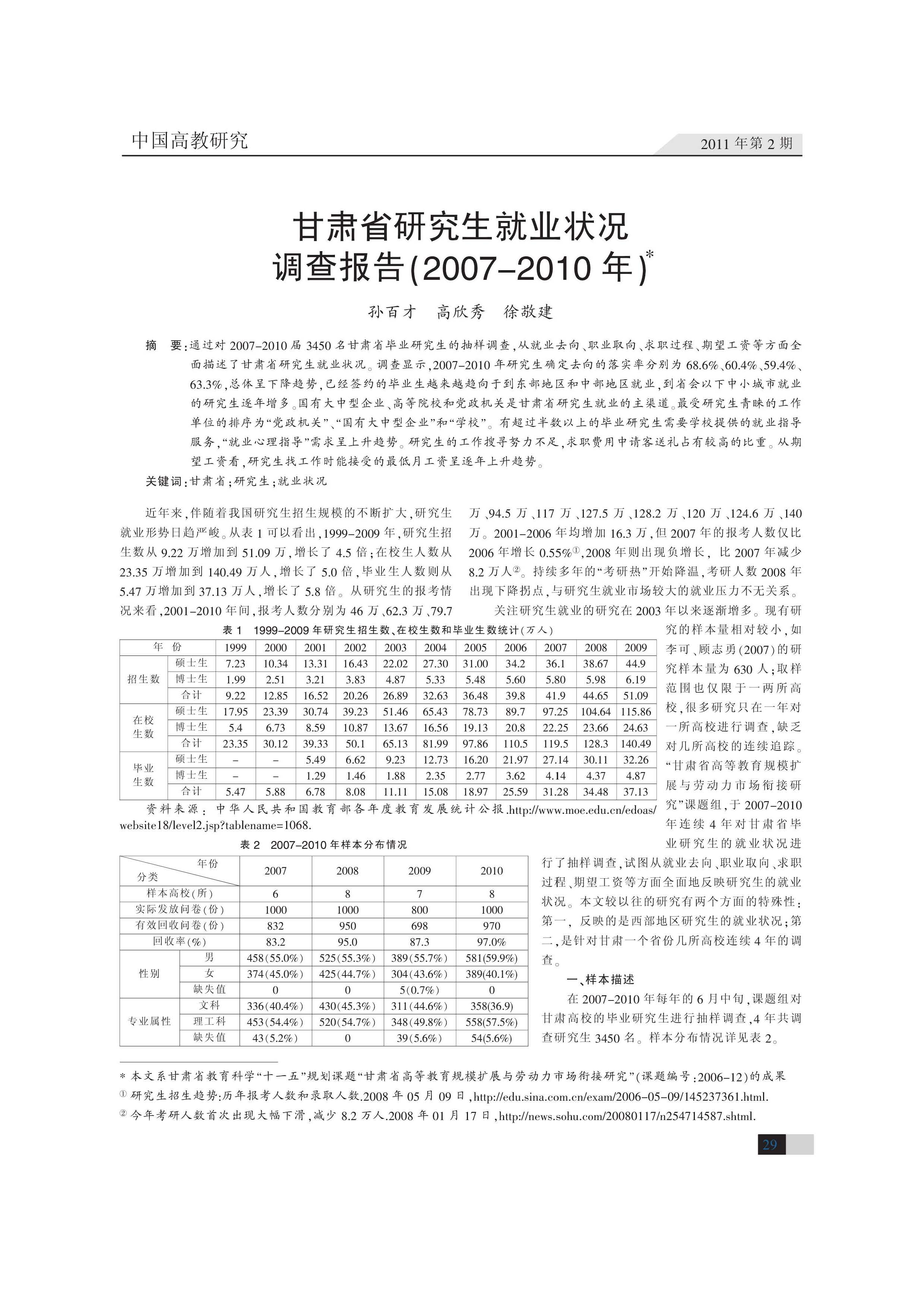甘肃省研究生就业状况调查报告_2007_2010年(孙百才 高欣秀 徐敬建)