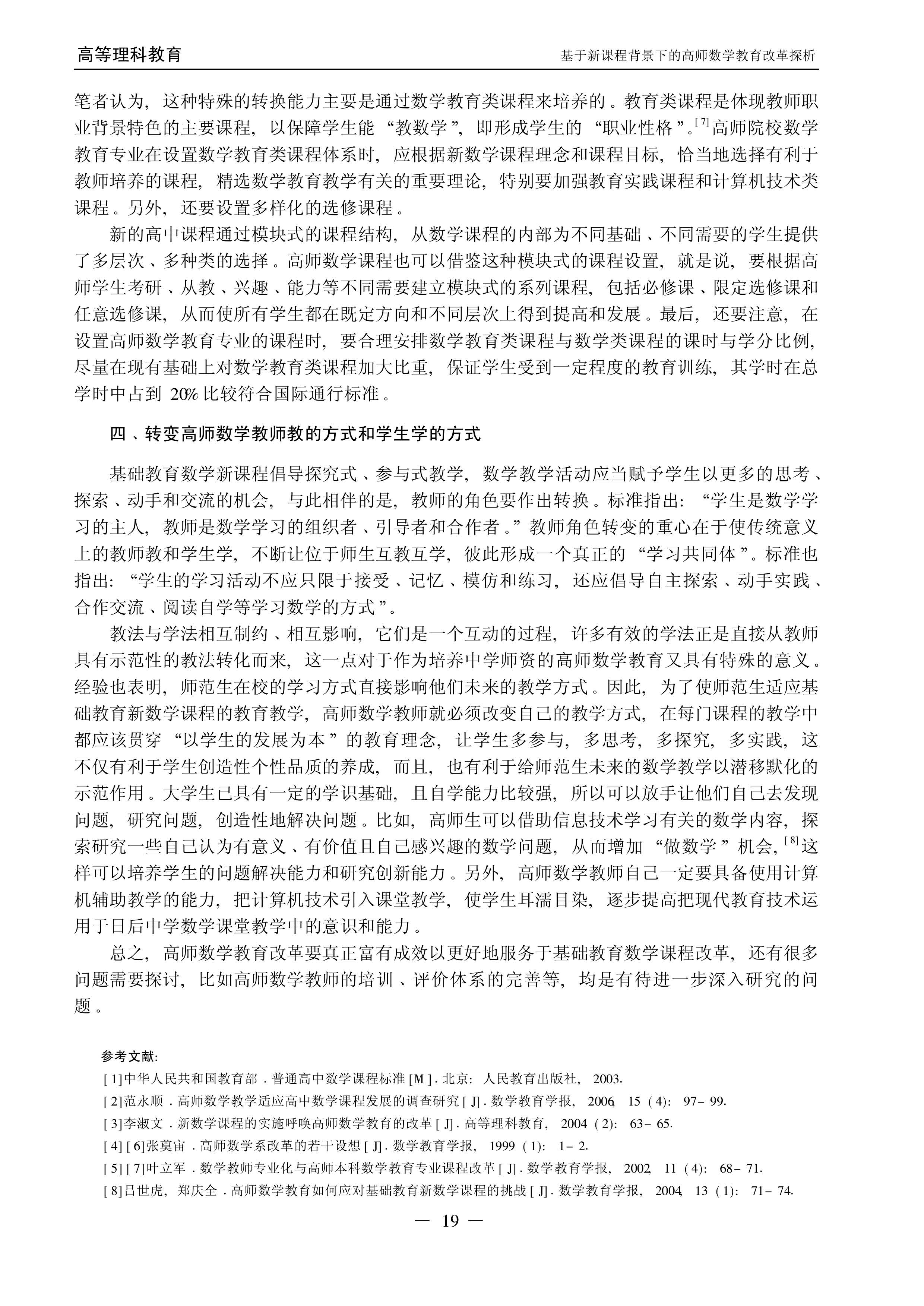 基于新课程背景下的高师数学教育改革探析(孙名符 李涵)