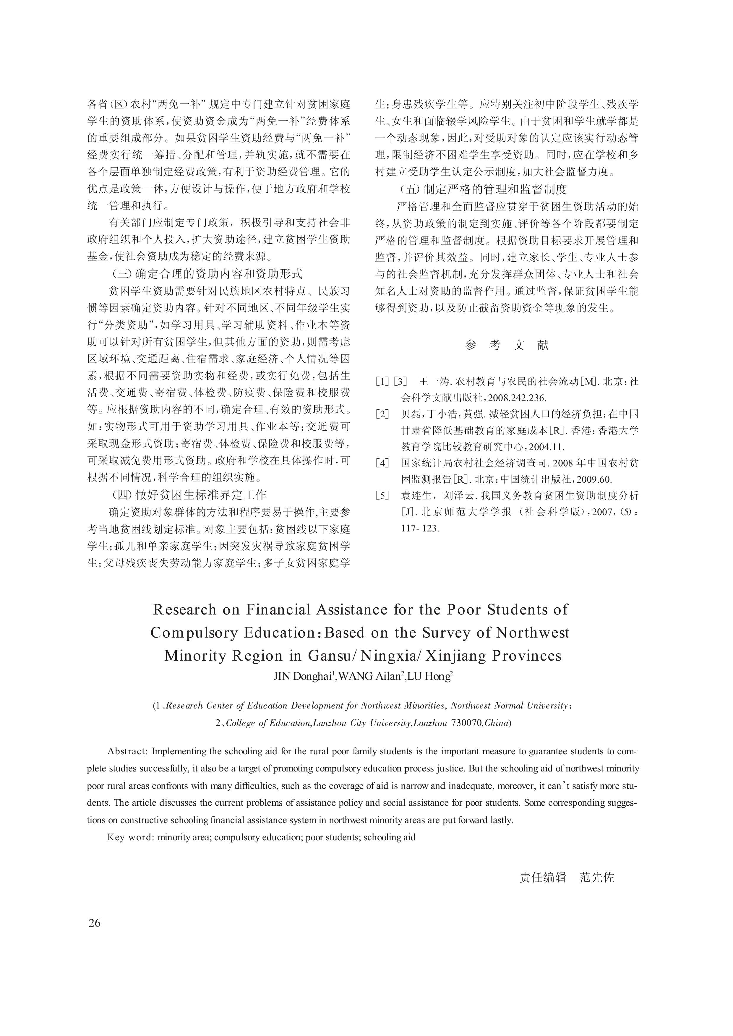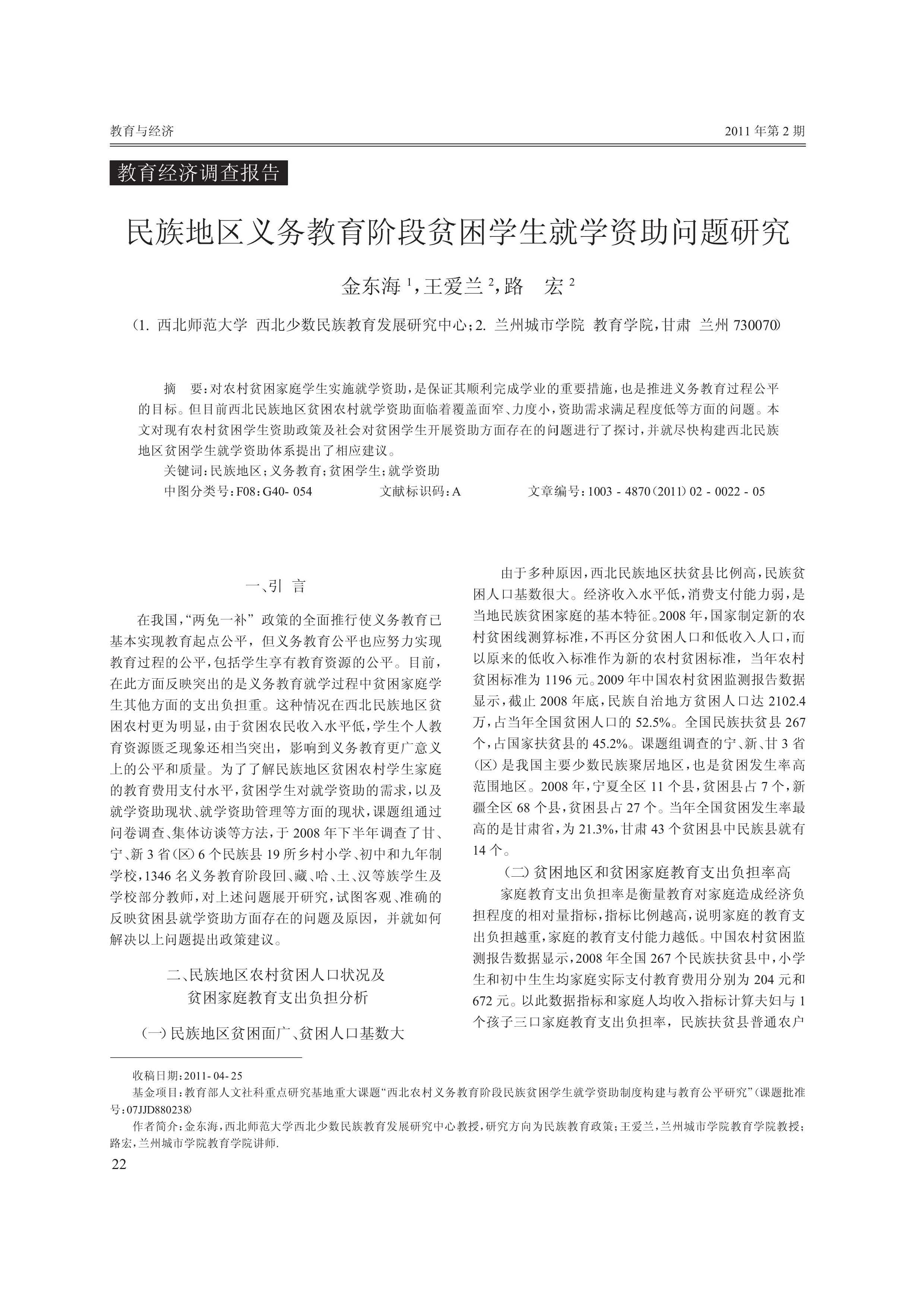 民族地区义务教育阶段贫困员工就学资助问题研究(金东海 王爱兰 路宏)