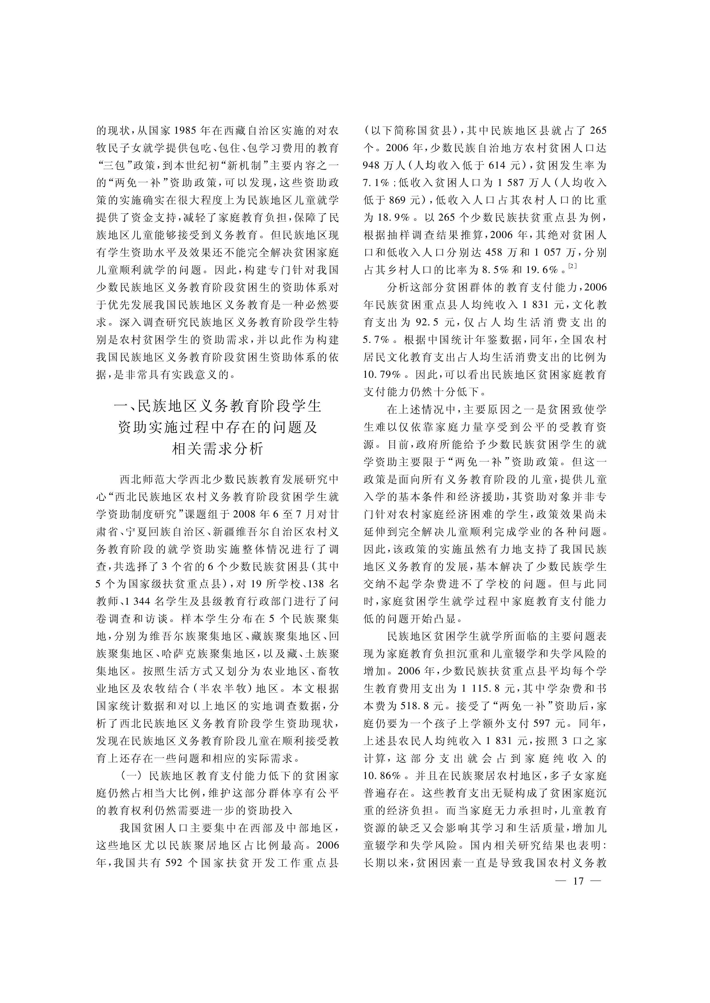 西北民族地区义务教育贫困生资助需求及相关政策研究(安静 金东海)
