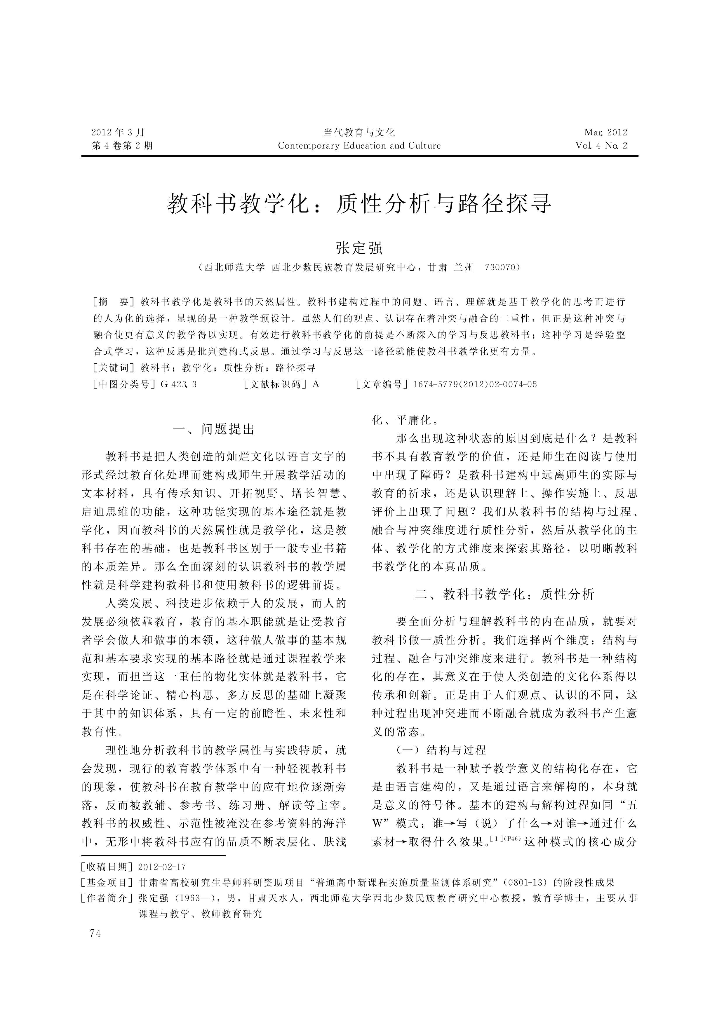 教科书教学化_质性分析与路径探寻(张定强)