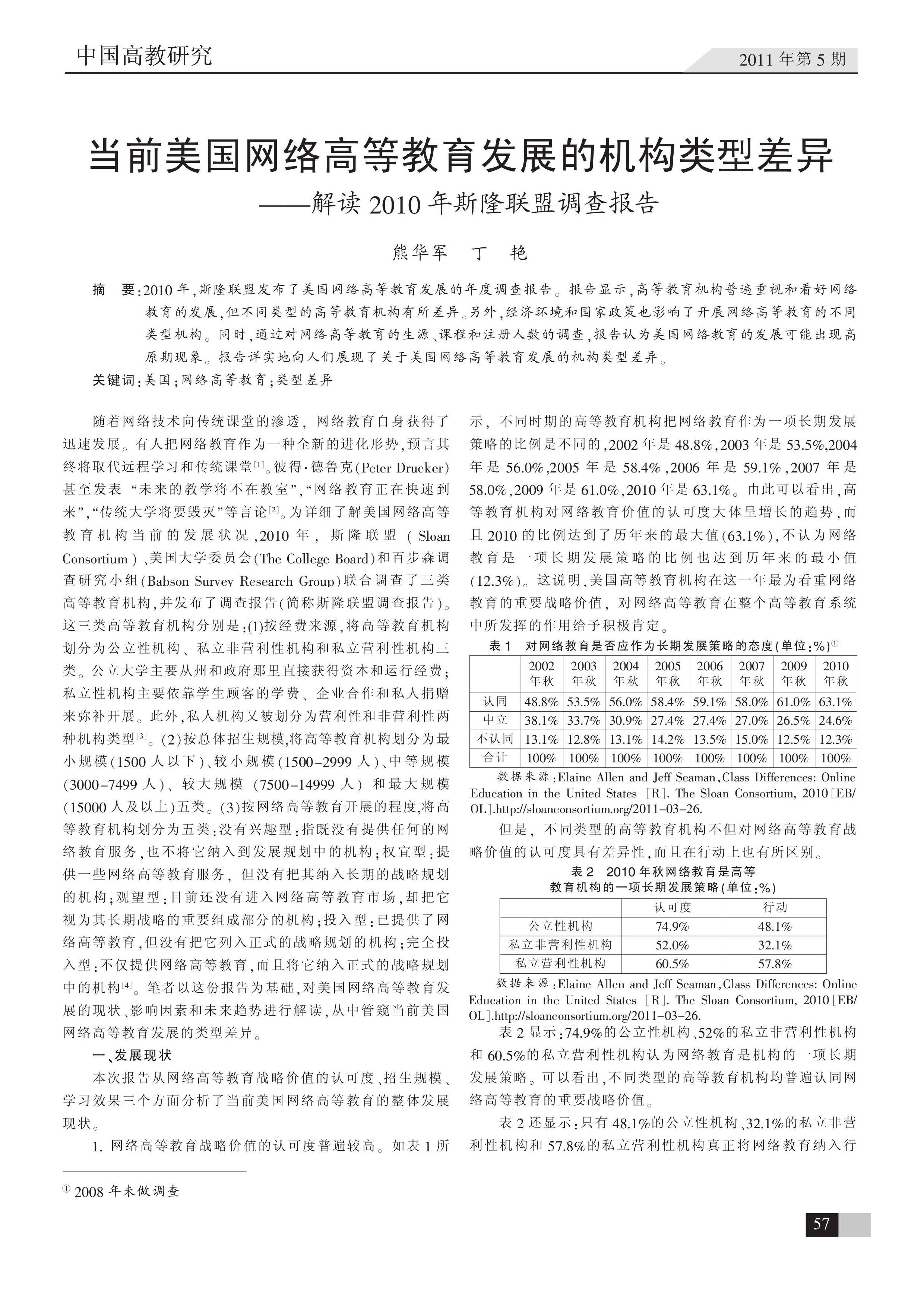 当前美国网络高等教育发展的机构类型差异_解读2010年斯隆联盟调查报告(熊华军 丁艳)