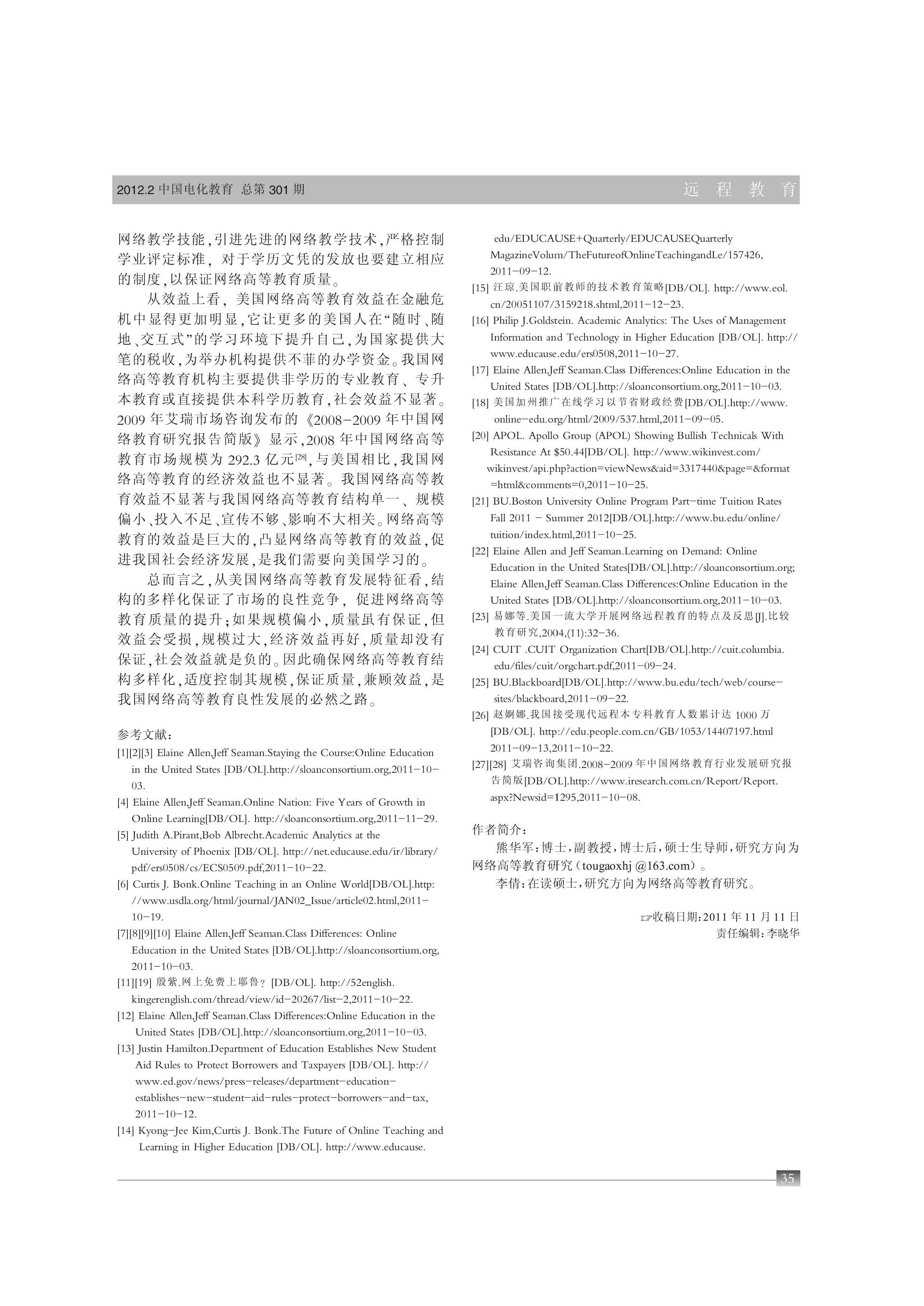 美国网络高等教育发展的特征及其启示_基于斯隆联盟报告的分析(熊华军 李倩)