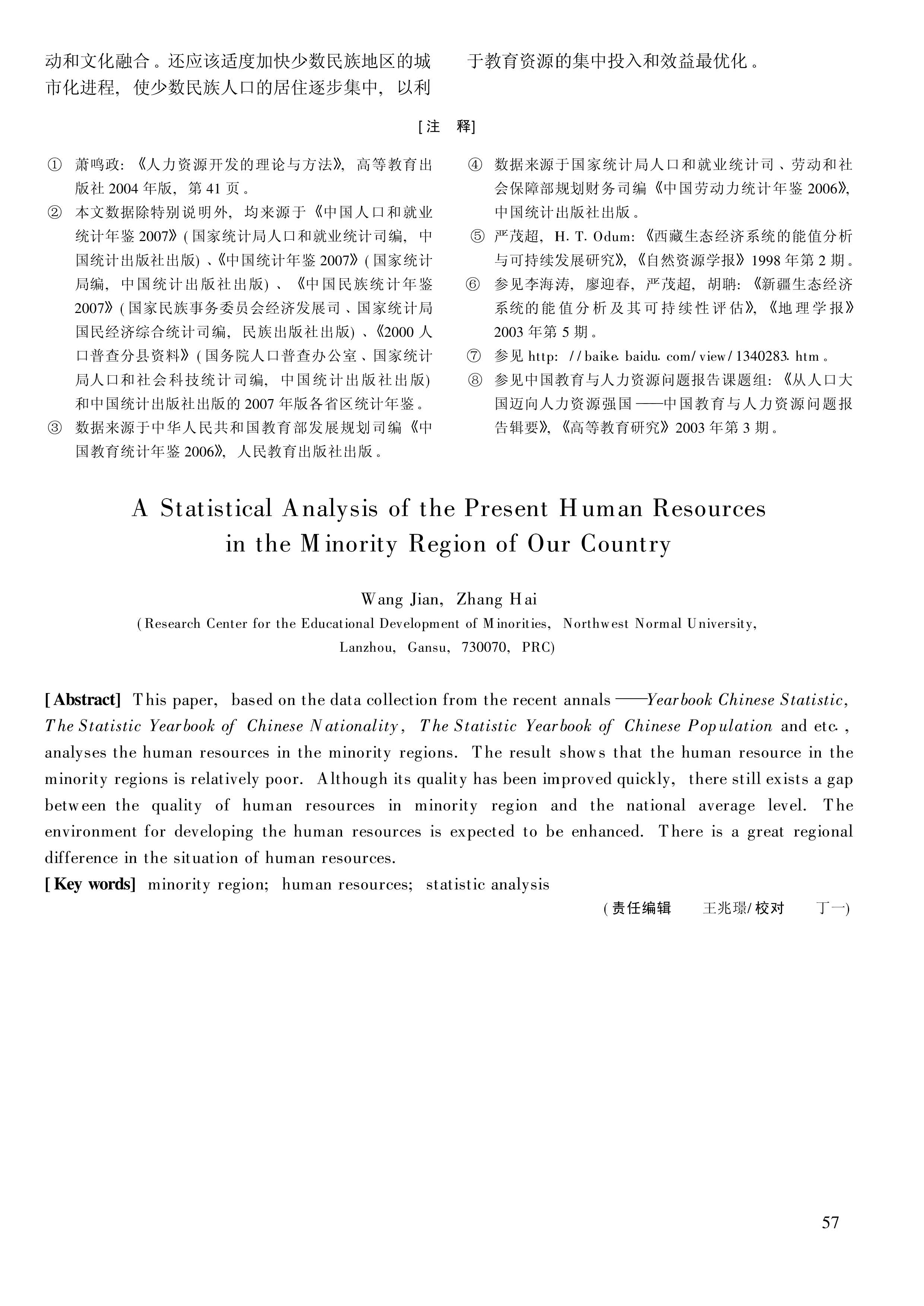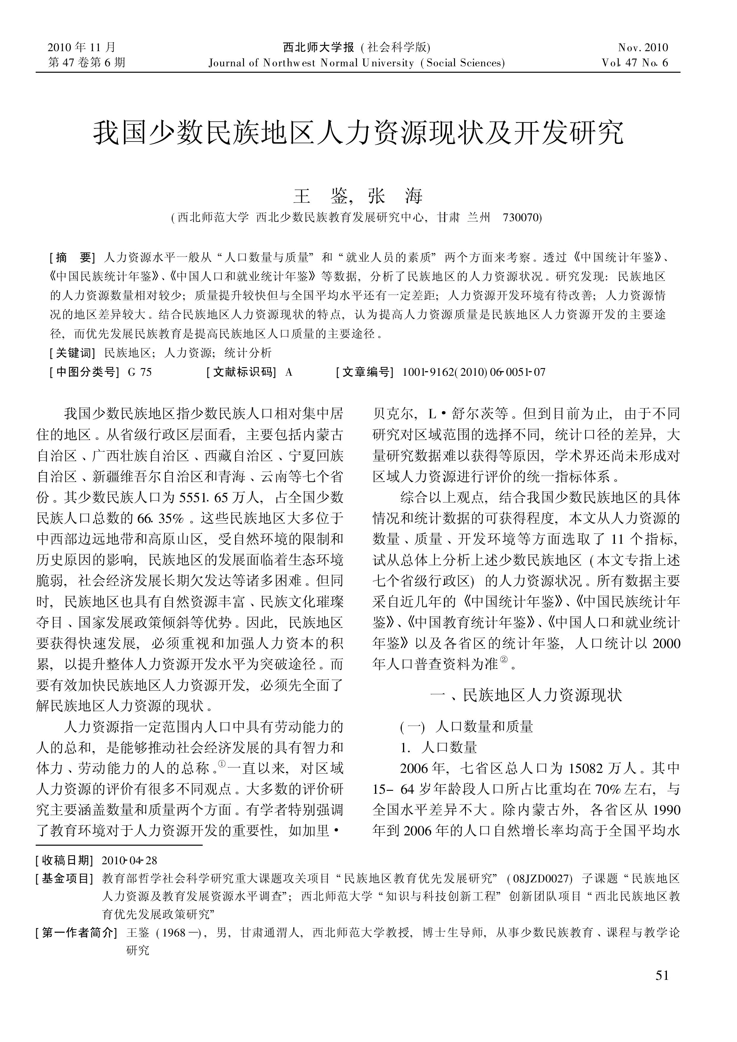 我国少数民族地区人力资源现状及开发研究(王鉴 张海)