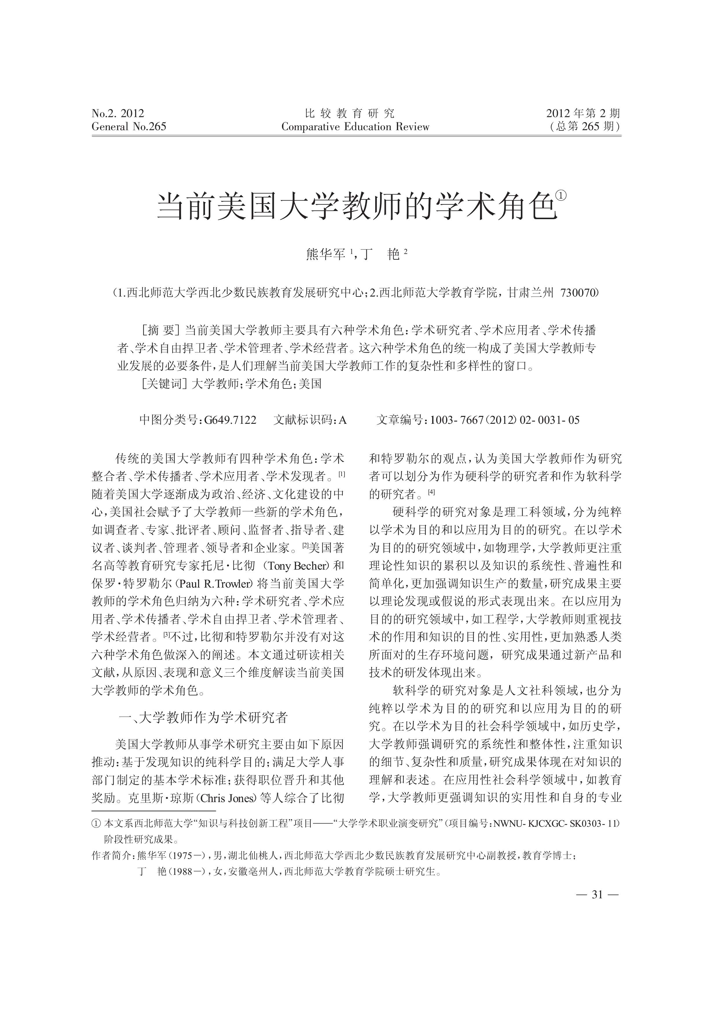 当前美国大学教师的学术角色(熊华军 丁艳)