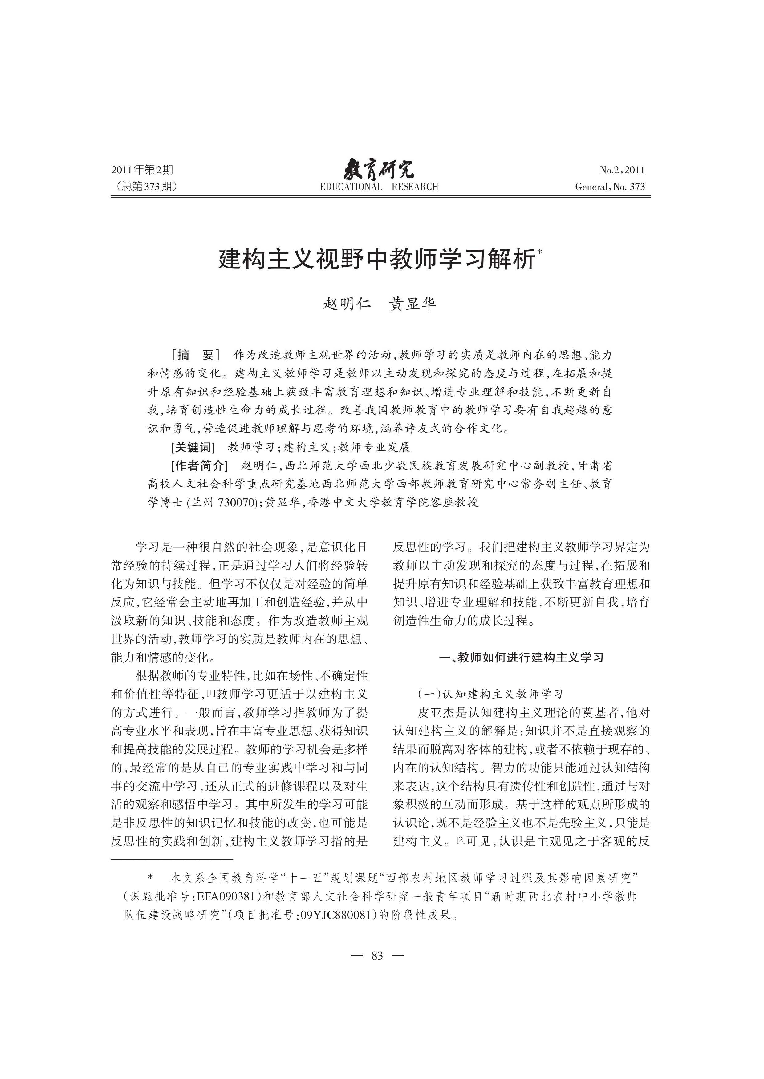 建构主义视野中教师学习解析(赵明仁 黄显华)