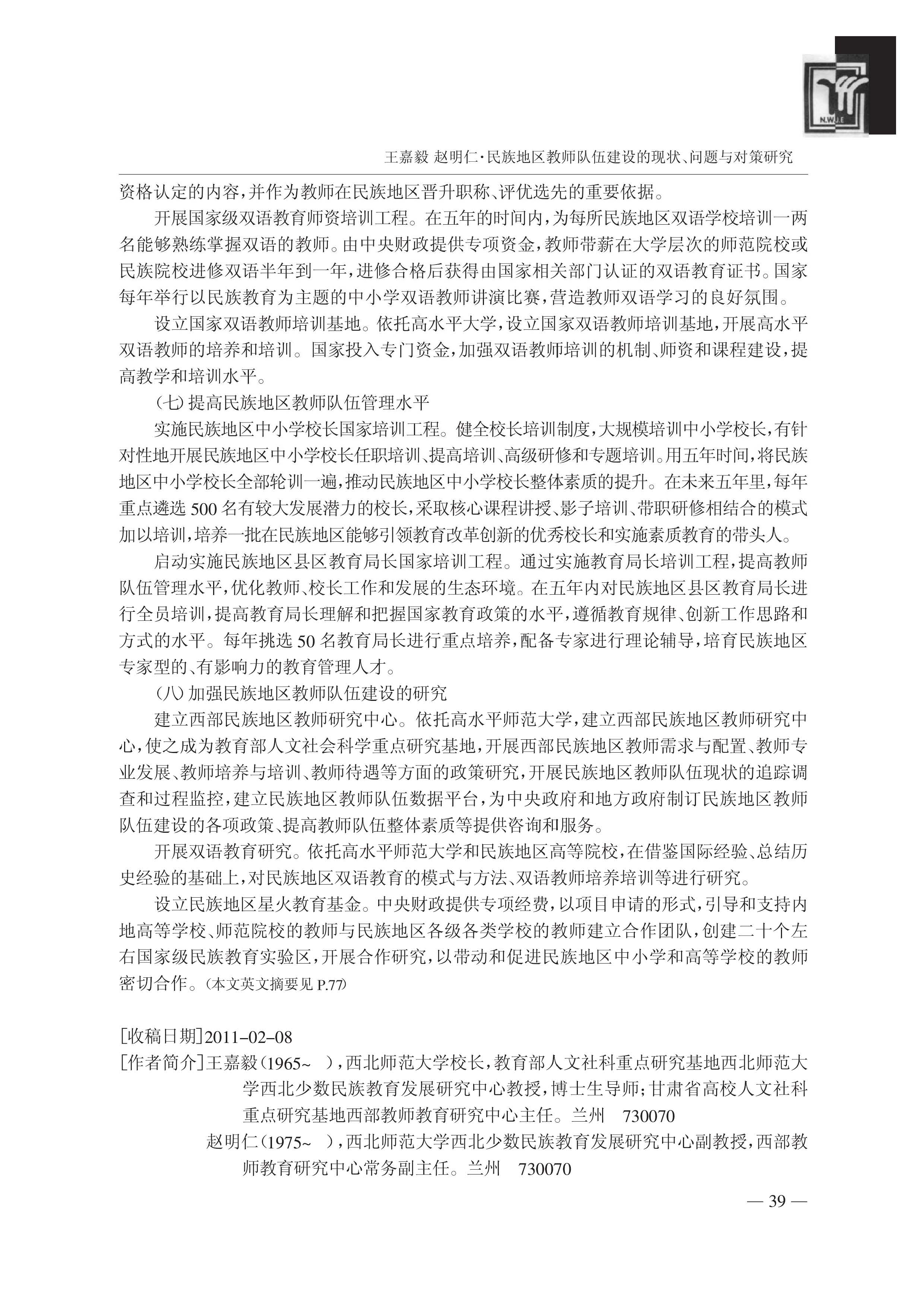 民族地区教师队伍建设的现状_问题与对策研究(王嘉毅 赵明仁)