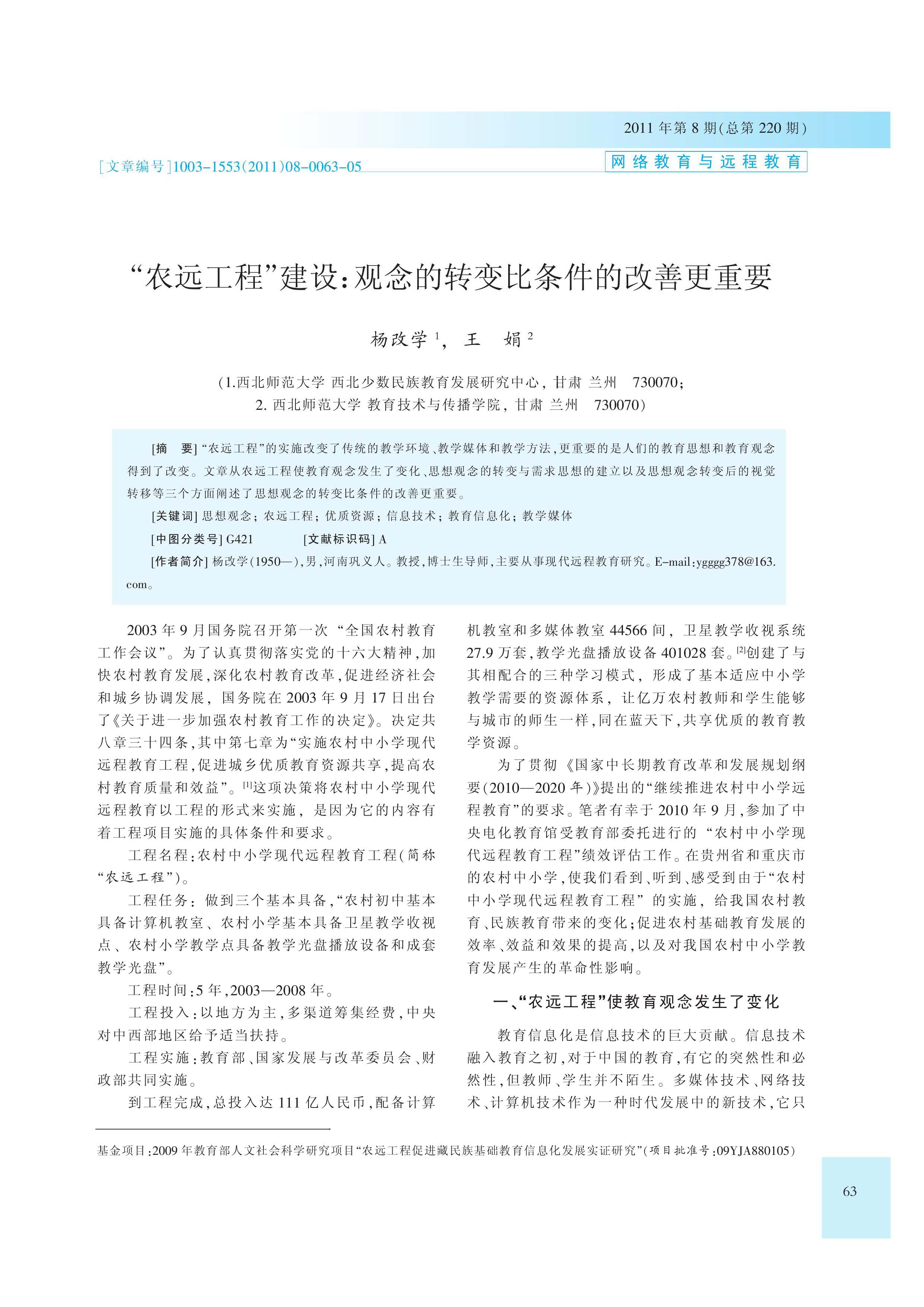 农远工程_建设_观念的转变比条件的改善更重要(杨改学 王娟)