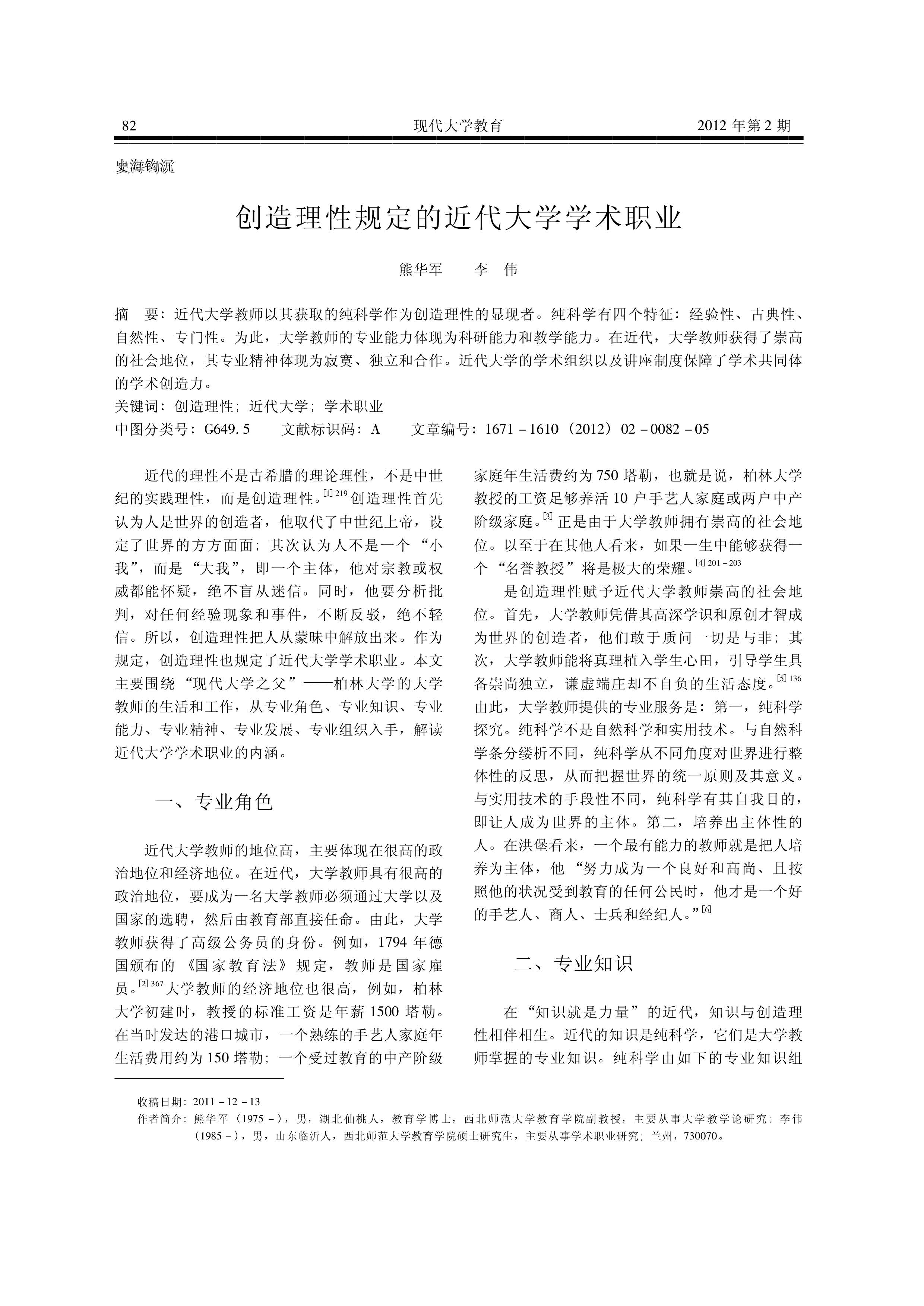 创造理性规定的近代大学学术职业(熊华军 李伟)