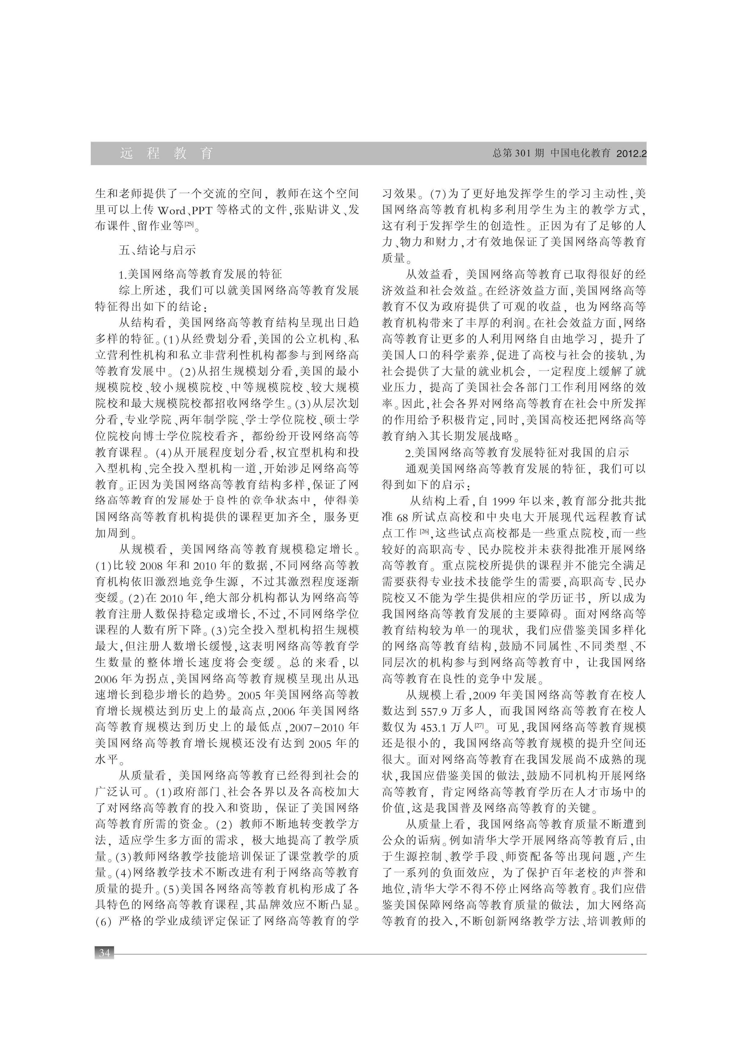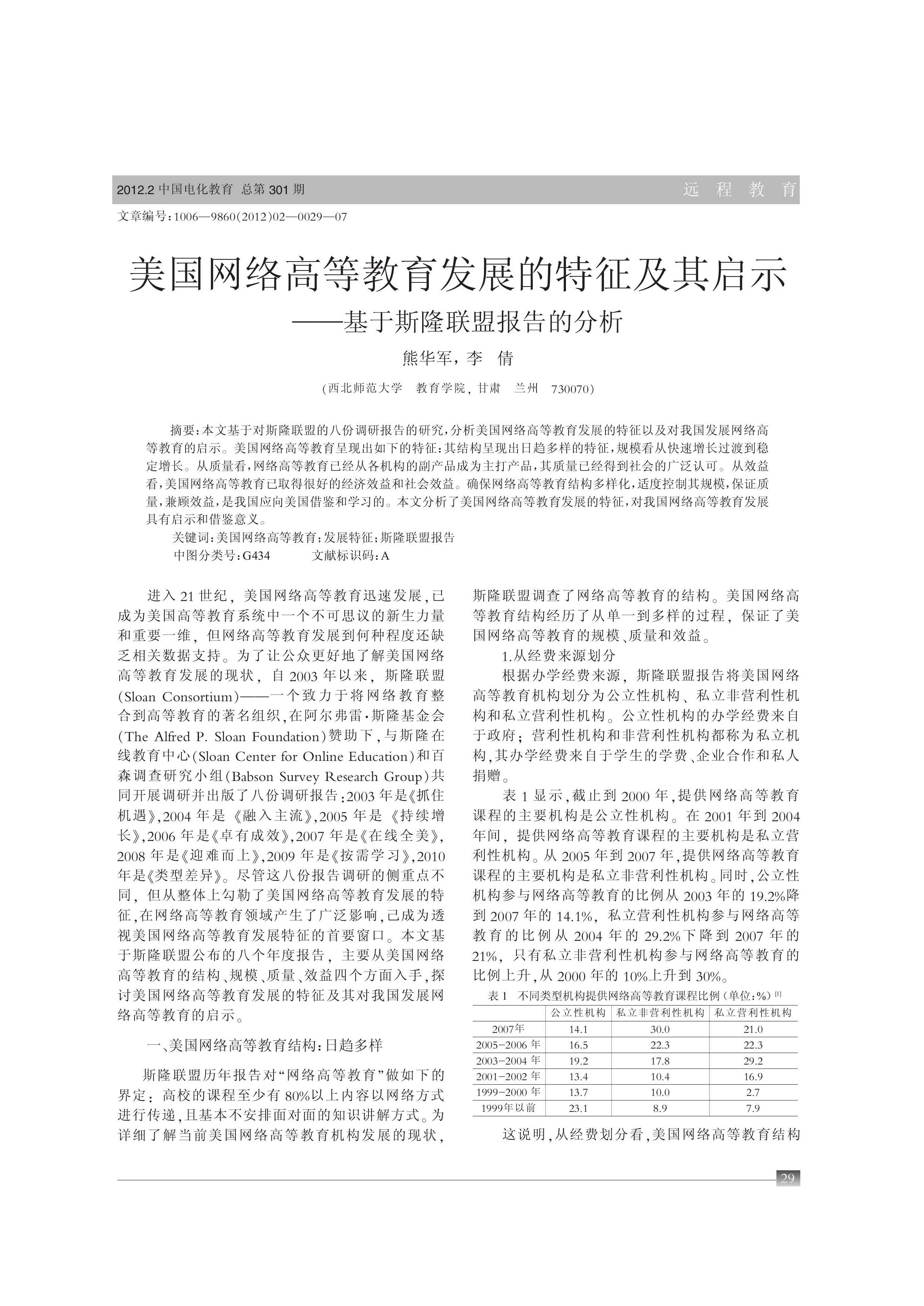 美国网络高等教育发展的特征及其启示_基于斯隆联盟报告的分析(熊华军 李倩)