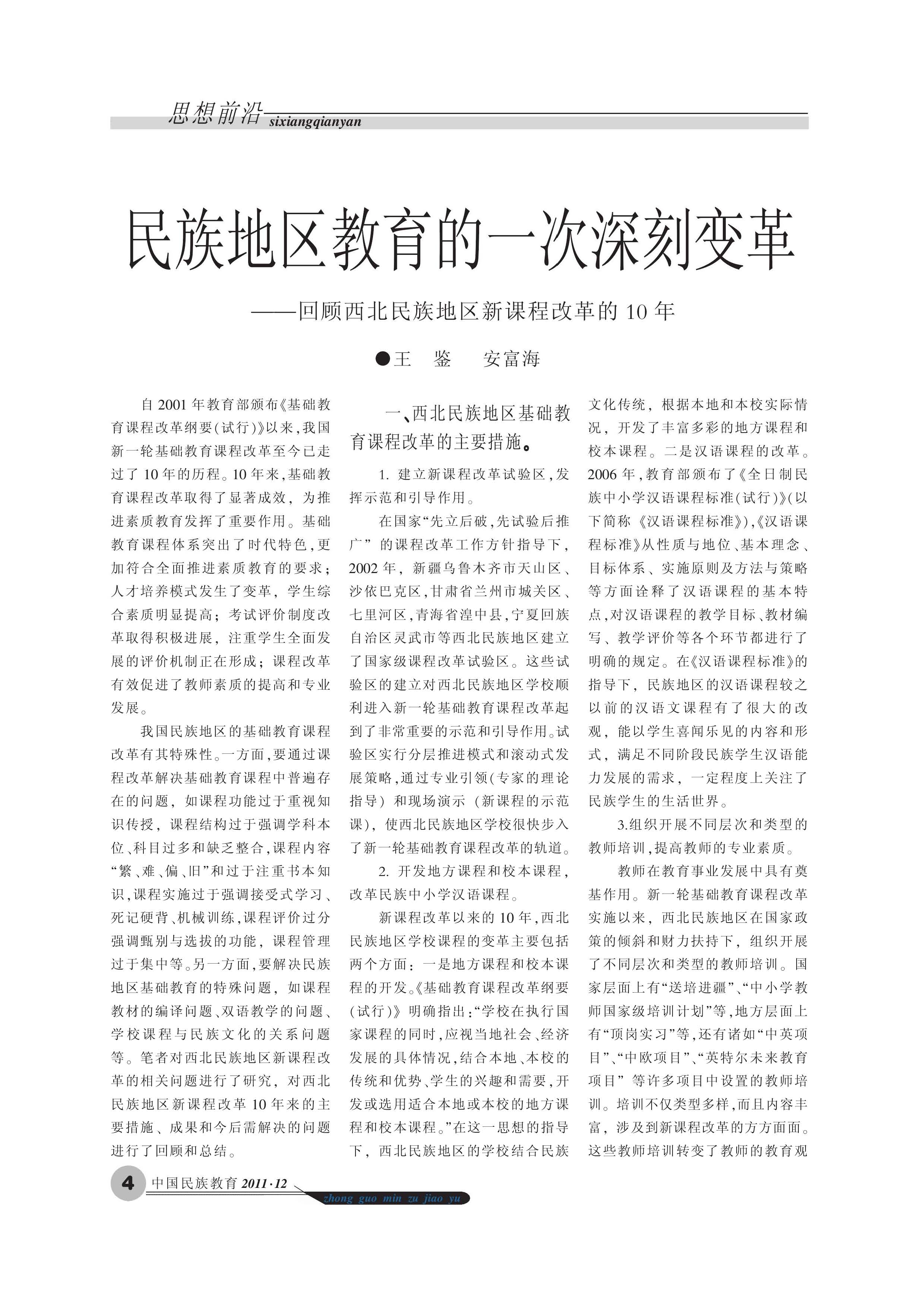 民族地区教育的一次深刻变革_回顾西北民族地区新课程改革的10年(王鉴 安富海)