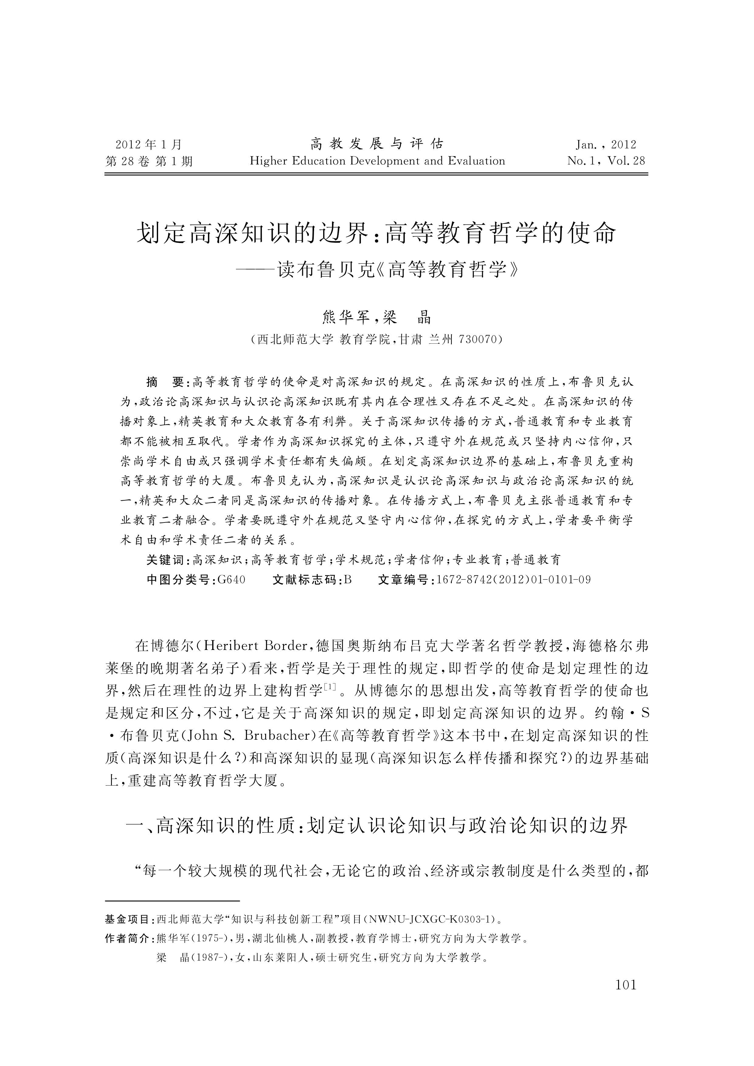 划定高深知识的边界_高等教育哲学的使命_读布鲁贝克_高等教育哲学(熊华军 梁晶)