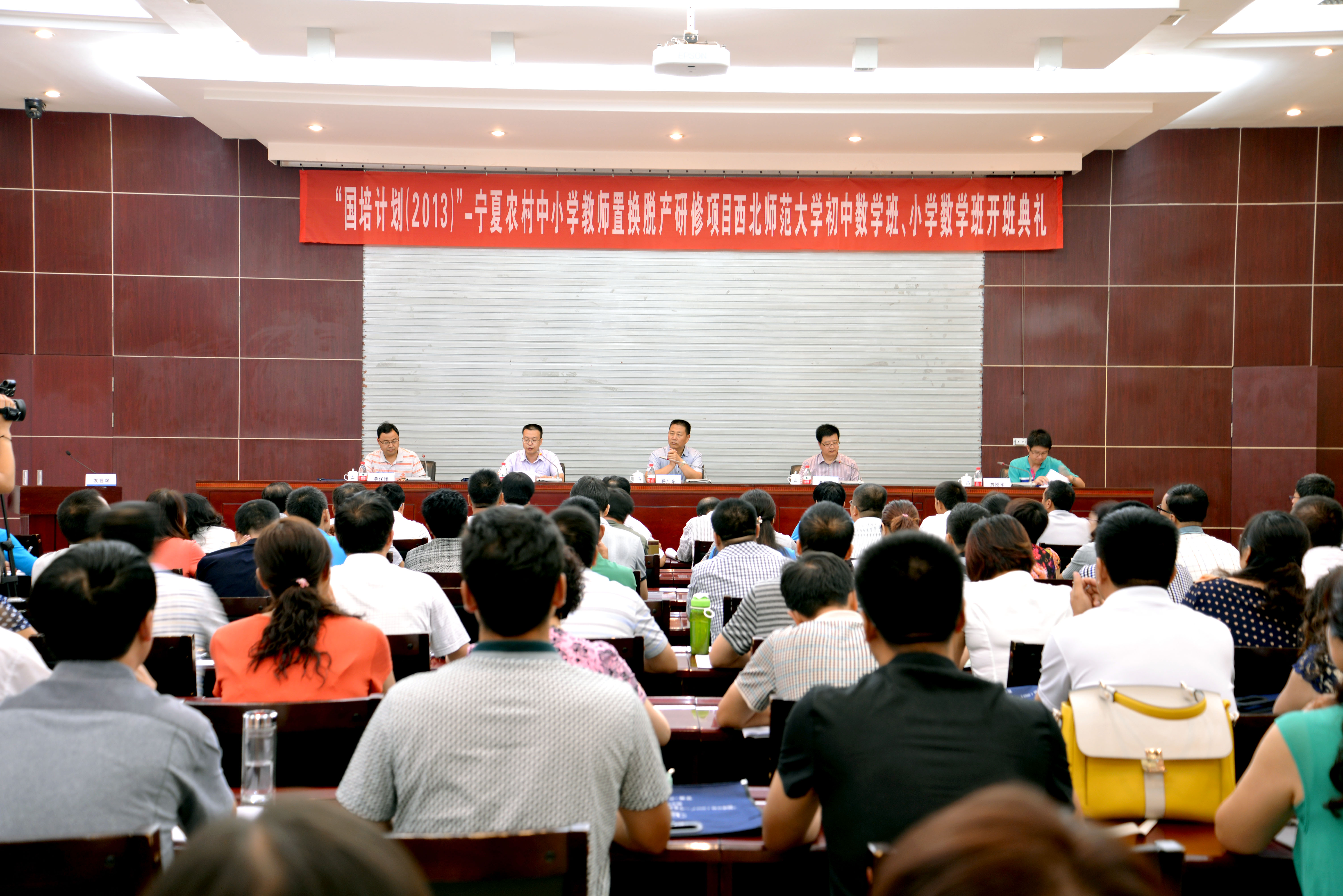 2013年8月21日上午,“国培计划(2013)”-宁夏农村中小学教师置换脱产研修项目伟德体育官方网站初中数学班、小学数学班开班典礼在公司举行。公司党委书记杨旭东同志、经理李瑾瑜教授、副经理张定强出席了开班典礼。公司相关负责人、班主任、来自宁夏的135名中小学骨干教师参加了开班典礼。开班典礼由公司副经理张定强教授主持。