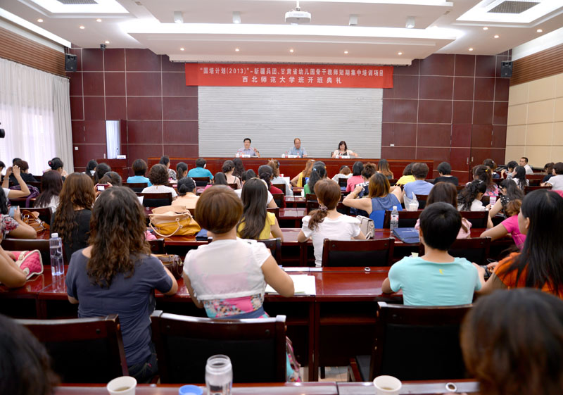 8月26日上午,“国培计划(2013)”- 新疆兵团、甘肃省幼儿园骨干教师短期集中培训伟德体育官方网站研修班开班典礼在公司举行。公司副董事长万明钢教授、公司(教师培训公司)经理李瑾瑜教授出席了开班典礼。学前教育专业相关负责人、班主任、来自新疆兵团、甘肃省的160名幼儿园骨干教师参加了开班典礼。开班典礼由教育公司(教师培训公司)经理李瑾瑜教授主持。