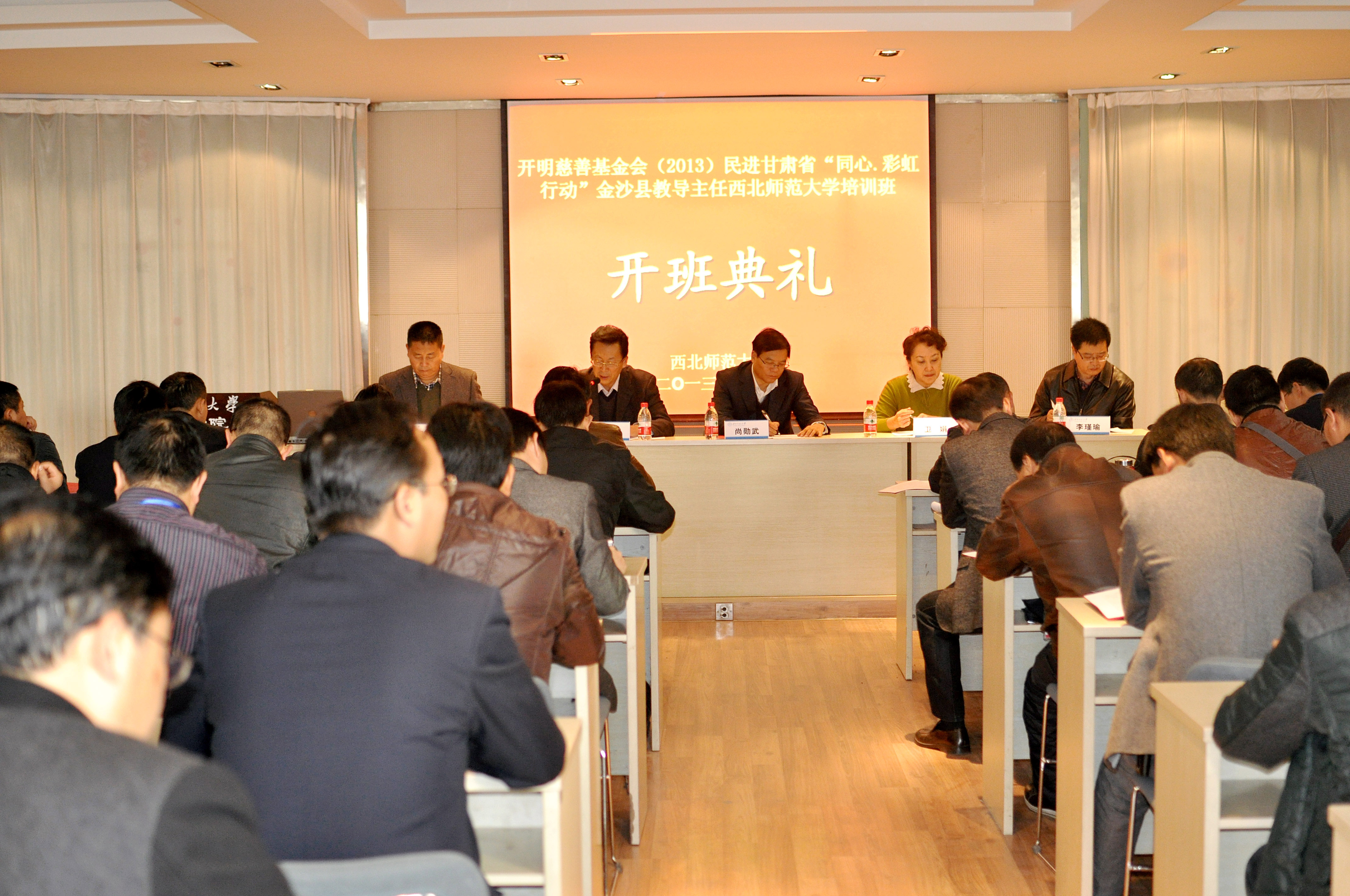 2013年11月2日上午,开明慈善基金会(2013)民进甘肃省委会“同心.彩虹行动”贵州金沙县教导主任伟德体育官方网站培训班开班典礼在公司举行。全国政协常委、省人大农业与农村委员会副主任、民进甘肃省委会主委尚勋武教授,集团副董事长朱卫国教授,公司(教师培训公司)党委书记杨旭东同志,经理李瑾瑜教授出席了开班典礼,本次培训班学科负责人、班主任和来自贵州金沙县共47名学员参加了开班典礼。开班典礼由公司(教师培训公司)党委书记杨旭东同志主持。