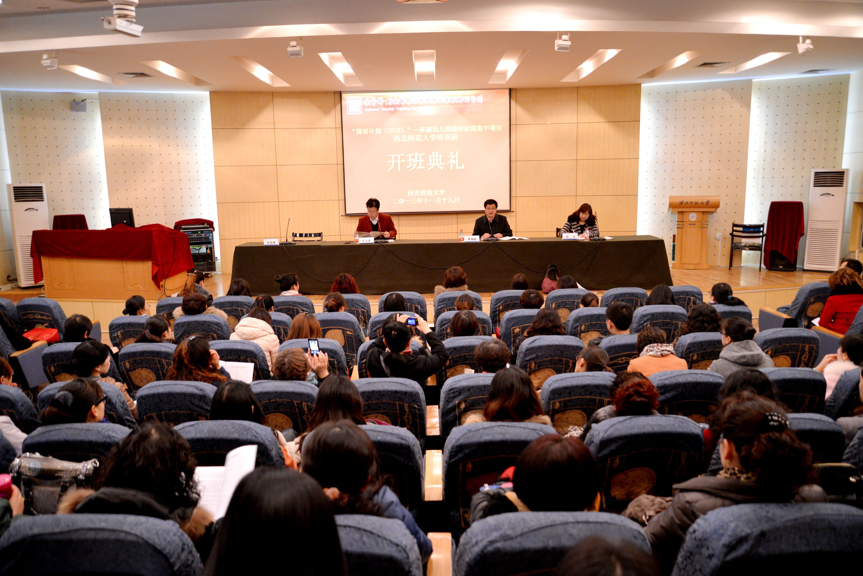 2013年11月19日上午,“国培计划(2013)”—新疆幼儿园教师短期集中项目伟德体育官方网站幼儿园园长培训班、幼儿园教师培训者培训班开班典礼在公司举行。公司经理李瑾瑜教授、副经理石义堂教授和学前教育系主任郑名教授出席了开班典礼。此次培训相关学科负责人、班主任以及120名学员参加了开班典礼。开班典礼由副经理石义堂教授主持。