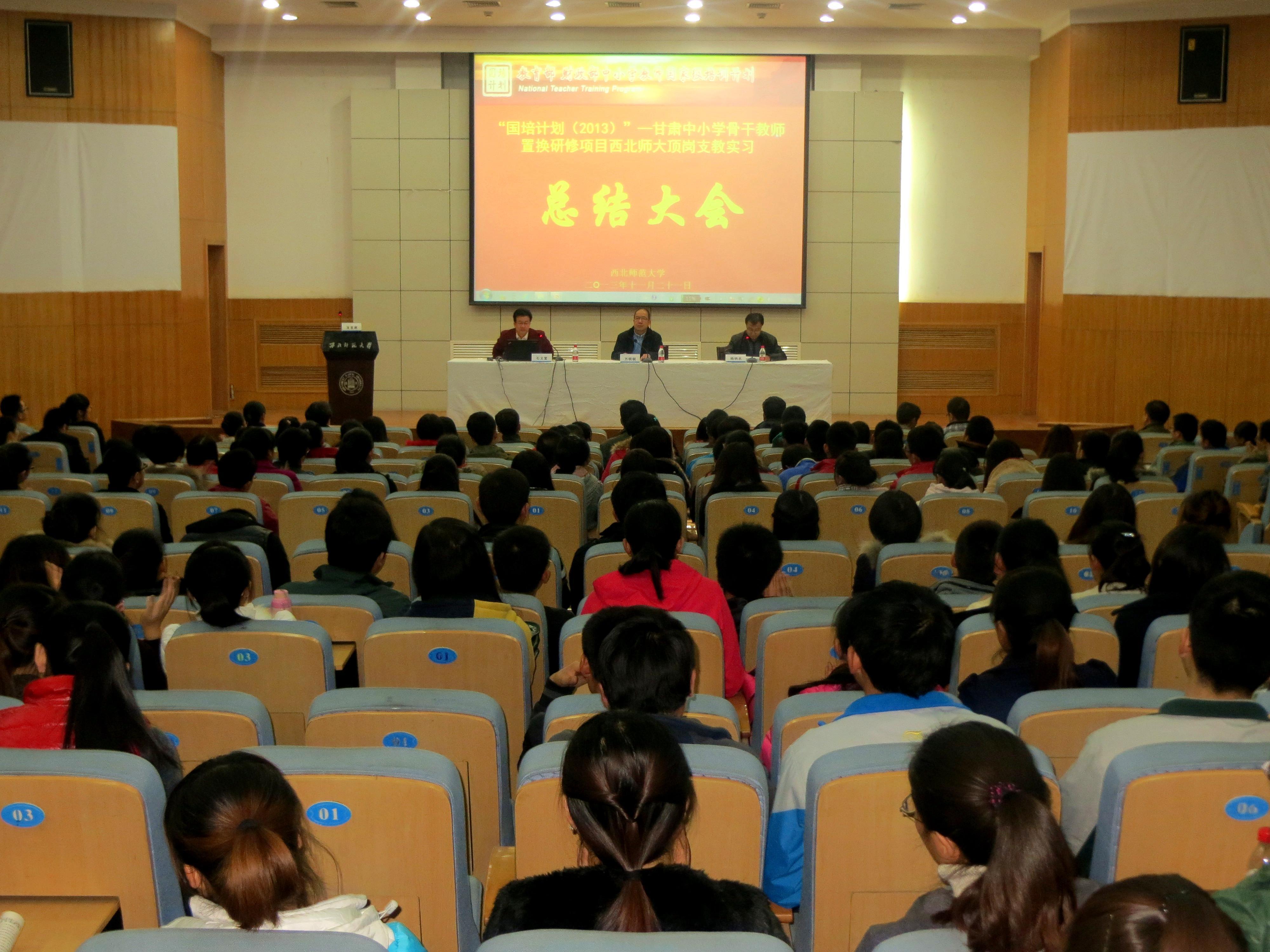 2013年11月21日下午,公司举行“国培计划(2013)”—甘肃农村中小学骨干教师置换研修项目顶岗实习总结大会。教务处、教育公司(教师培训公司)、等相关负责人和参加支教实习的410名本科生、研究生参加了会议。