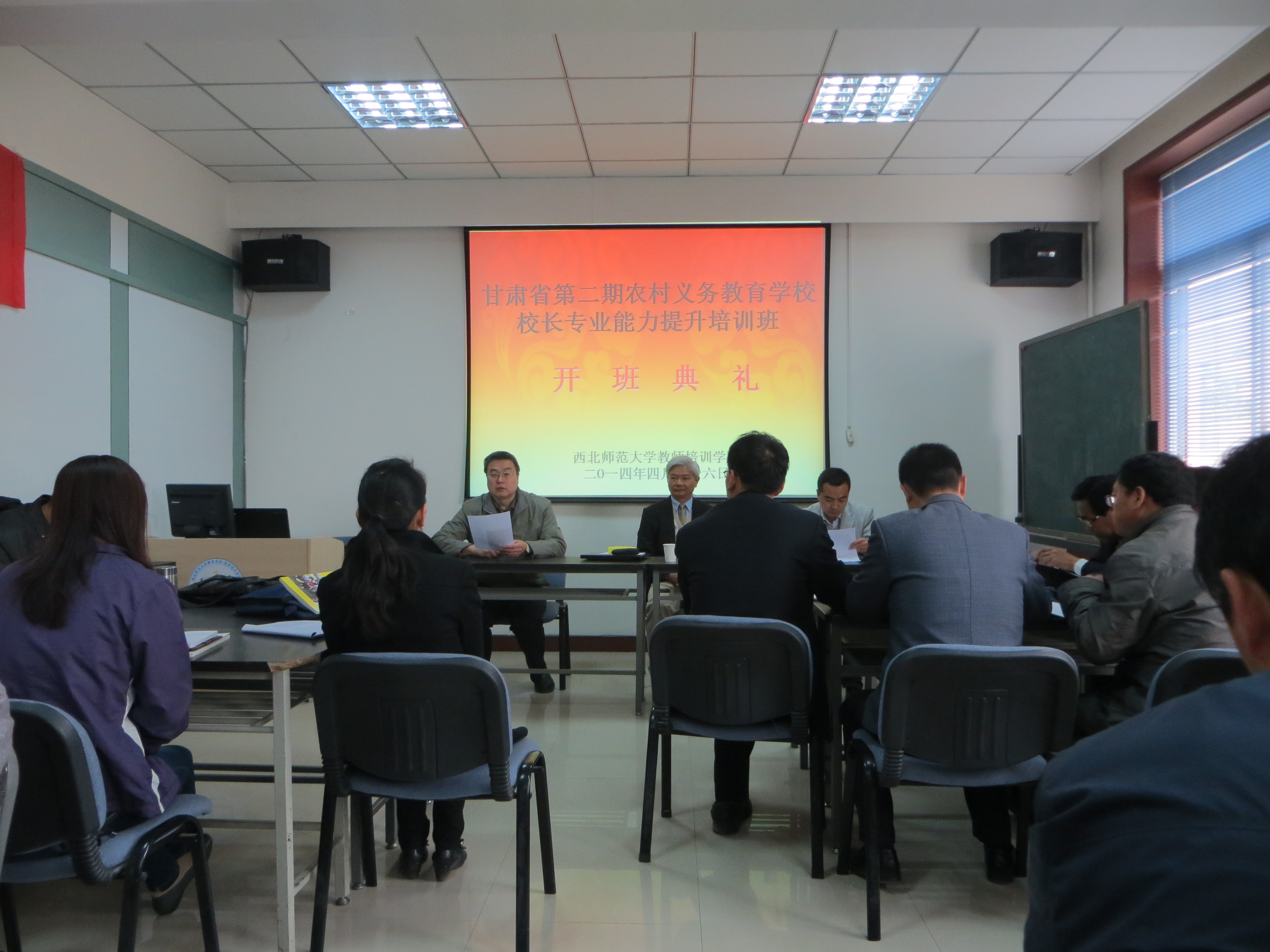 4月26日上午,田家炳基金会资助项目甘肃省第二期农村义务教育公司董事长专业能提升培训班在公司举行了开班典礼。甘肃省教育厅师范处副处长张永、香港大学教育公司教育领导研究中心主任吴浩明教授、公司副经理吕世虎教授出席了开班典礼,30名学员参加了开班典礼。