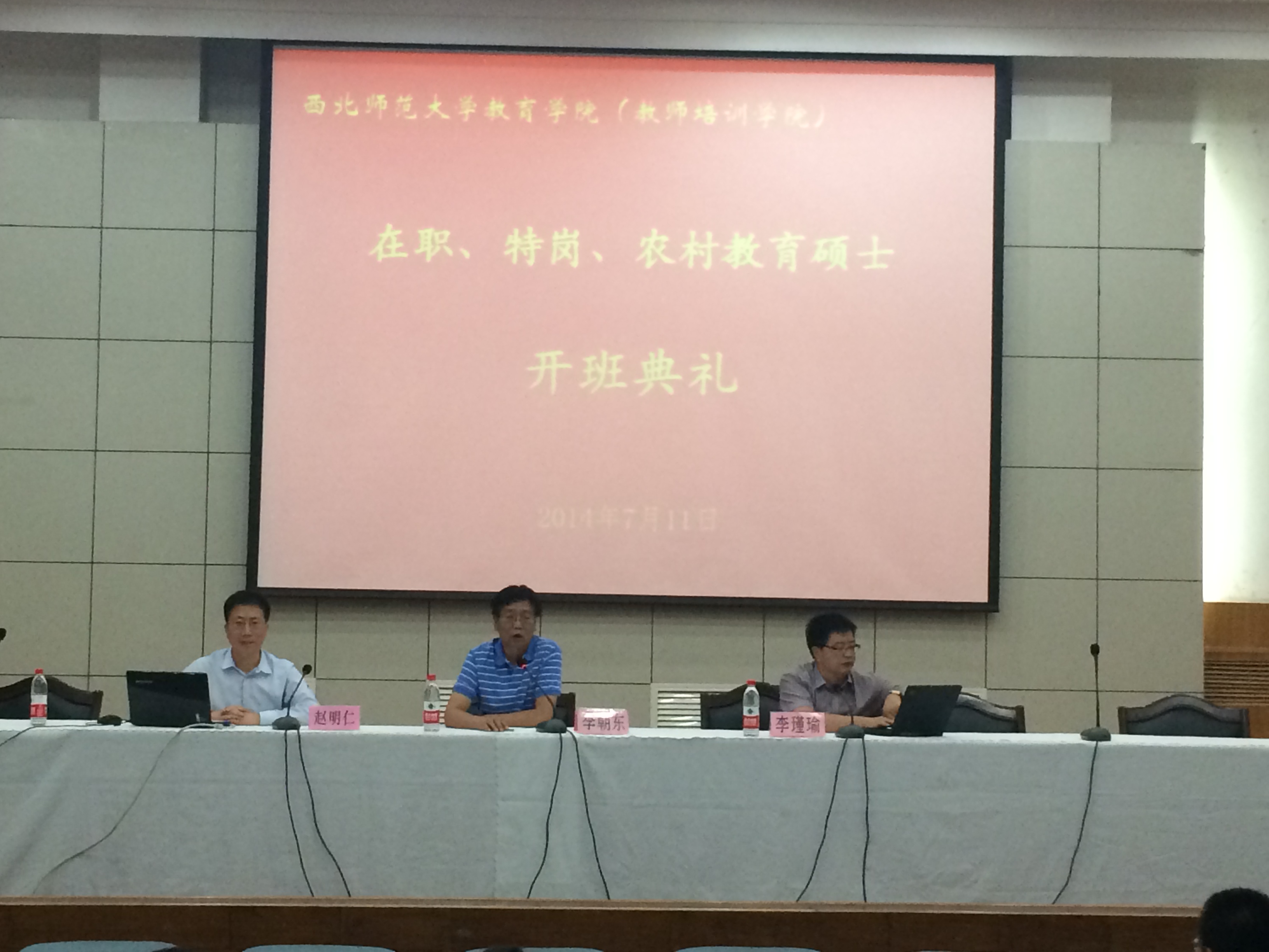 7月11日上午,公司在学术会堂举行了2012级和2013级在职教育硕士、特岗教师、农村教育硕士开课典礼。出席开课典礼的有研究生院经理李朝东教授、教育公司经理李瑾瑜教授、副经理赵明仁教授及各班级班主任。开课典礼由赵明仁副经理主持。