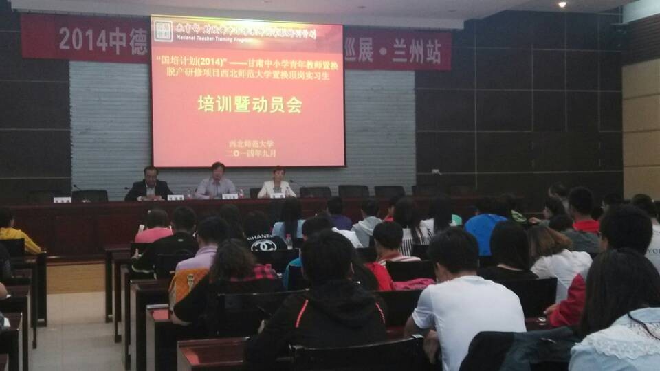 2014年9月15日,“国培计划(2014)”-甘肃中小学青年教师置换研修项目置换顶岗实习生动员培训会在公司召开。教务处副处长肖福赟、公司副经理石义堂、外国语公司副经理凌茜出席了培训动员会、地理学科负责人赵生龙副教授、物理学科负责人郎和副教授及来自地环公司、物电公司、外语公司、教育公司的138名实习生参加了培训动员会。