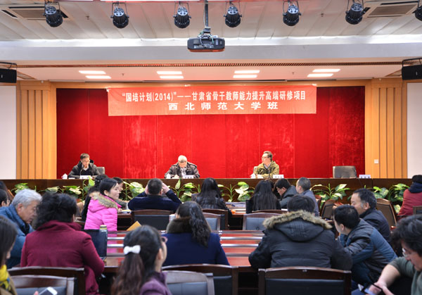 2015年1月15日上午,“国培计划(2014)”——甘肃省骨干教师能力提升高端研修项目伟德体育官方网站班开班典礼在公司举行,公司(教师培训公司)副经理吕世虎教授出席了开班典礼,学科负责人、班主任和来自甘肃14个市(区)的99名省级学科带头人与骨干教师参加了开班典礼,开班典礼由周晔副教授主持。