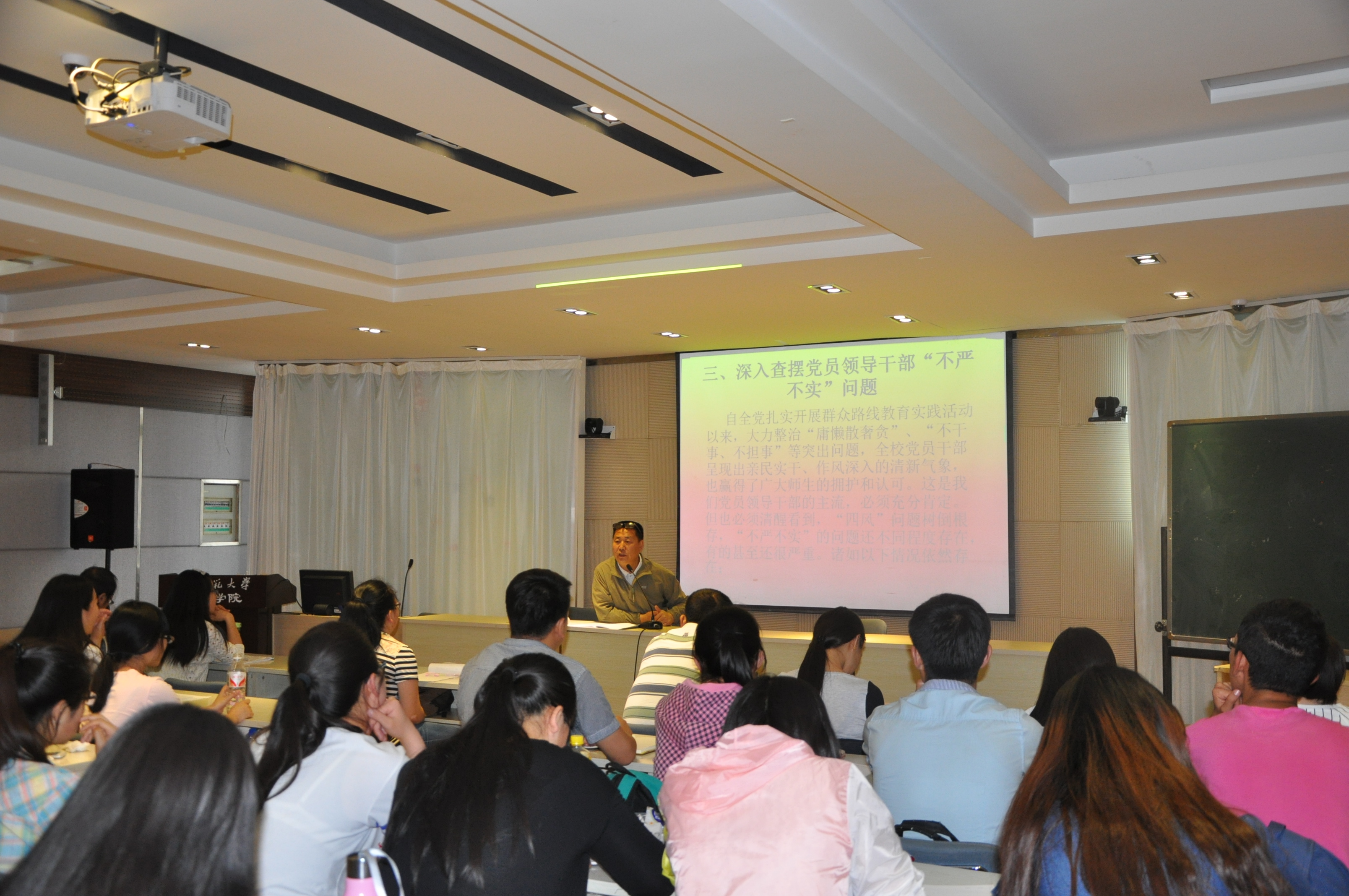 杨旭东书记向广大师生党员讲述了“三严三实”提出的背景,“三严三实”的本质和内涵,“三严三实”专题教育的重要意义,传达了公司开展“三严三实”专题教育的要求和措施。杨旭东强调,中央在党员领导干部中开展“三严三实”专题教育,是当前全党的重大政治任务,是党的群众路线教育实践活动的延展深化,是持续深入推进党的思想政治建设和作风建设的重要举措,是严肃党内政治生活、严明党的政治纪律和政治规矩的重要抓手,对于进一步增强党的创造力凝聚力战斗力,推进全面建成小康社会、全面深化改革、全面依法治国、全面从严治党,具有十分重要的意义。