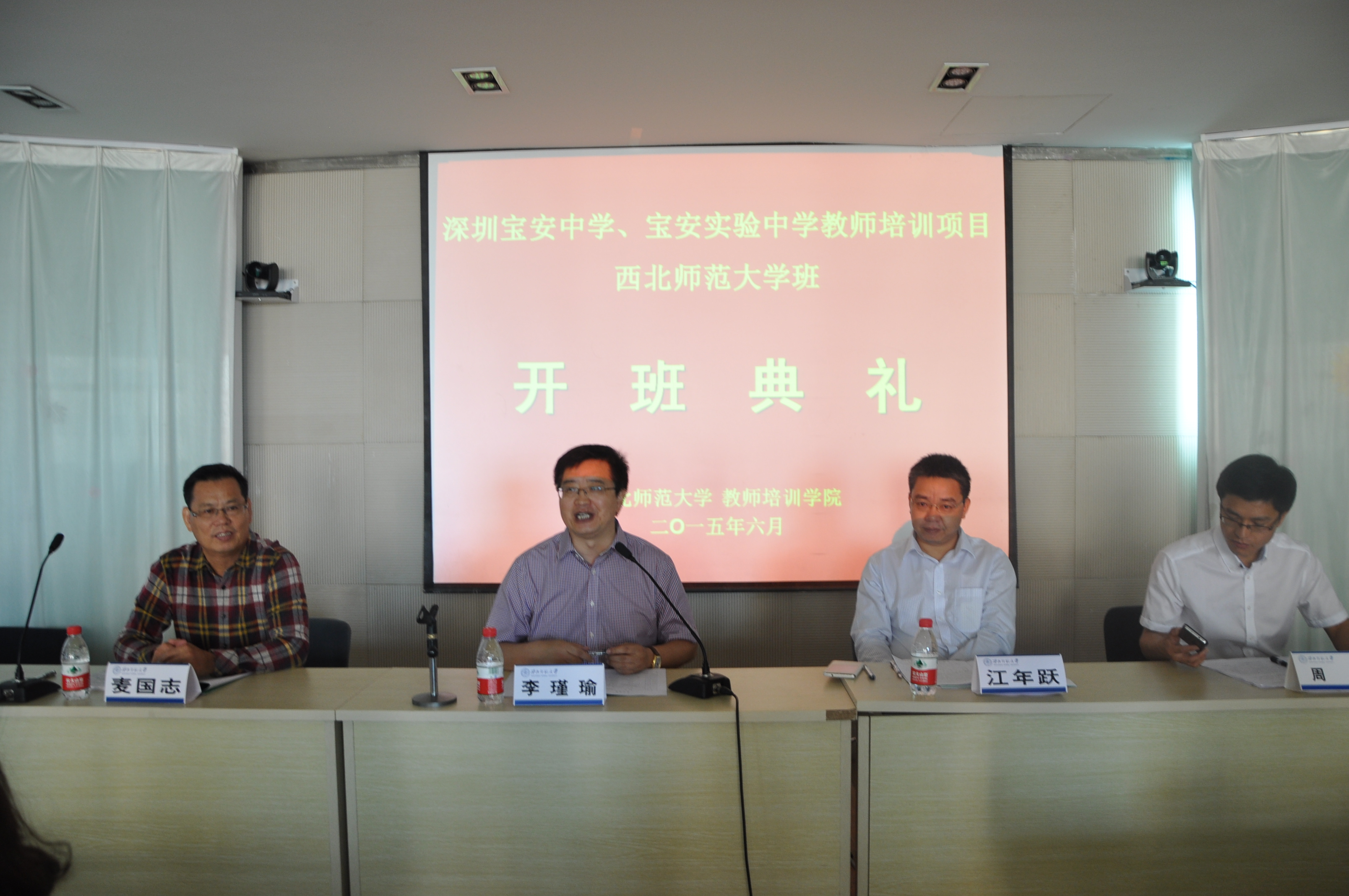 2015年6月25日,深圳宝安中学、保安实验公司教师培训班在公司举办。公司经理(教师培训公司)李瑾瑜、深圳宝安中学麦国志副董事长、宝安实验公司江年跃副董事长,学科负责人、班主任、两所公司的66名九年级教师参加了开班典礼。开班典礼由学科负责人周晔副教授主持。