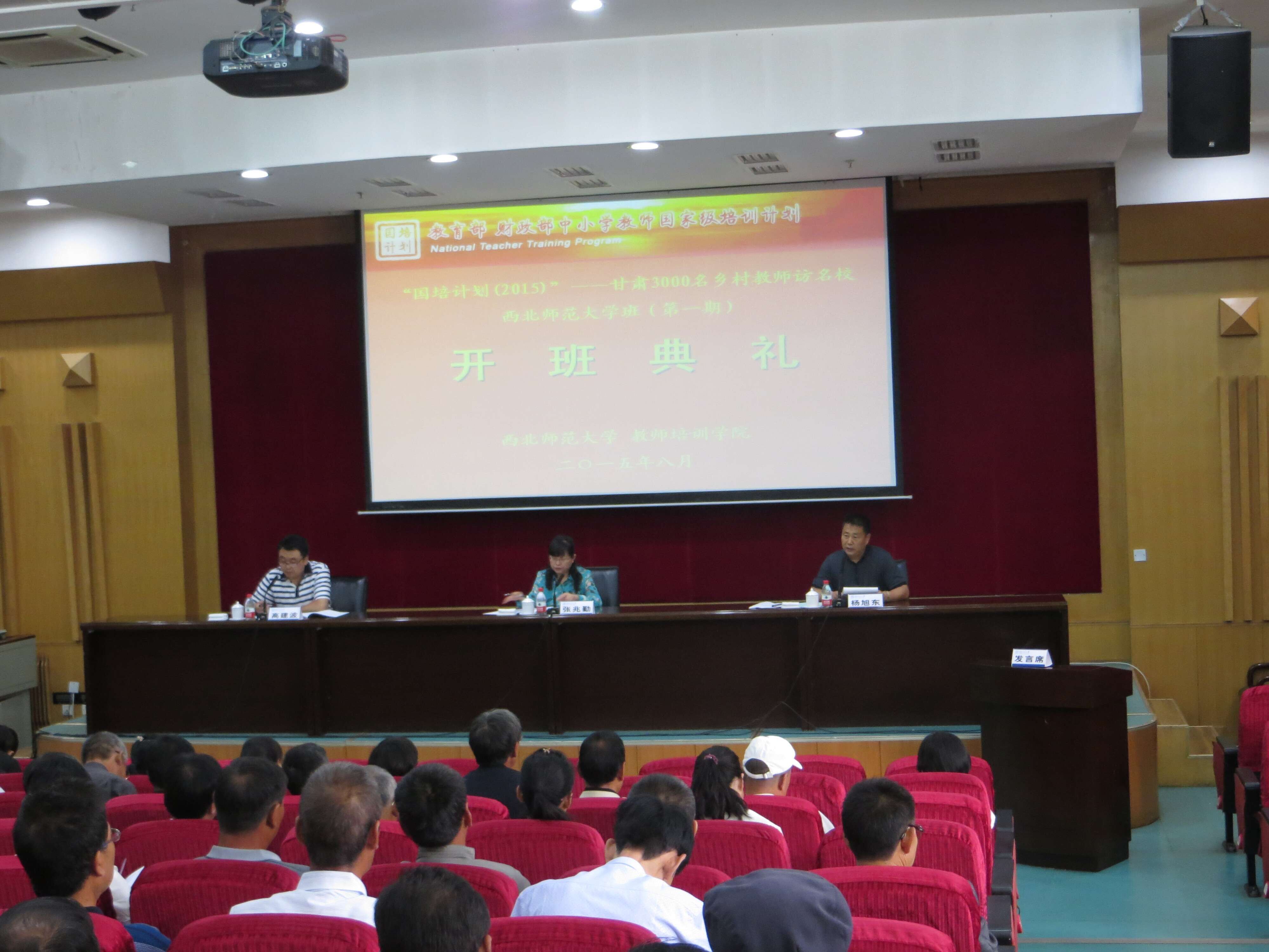 2015年8月16日,“国培计划(2015)”—甘肃3000名乡村教师访名校项目伟德体育官方网站班(第一期)在公司举办。甘肃省教育厅师范处张兆勤处长、教育公司(教师培训公司)杨旭东书记、学科负责人、班主任以及来自白银市10人以下微规模公司的211名乡村教师参加了开班典礼。