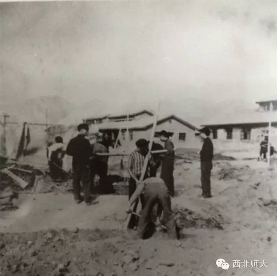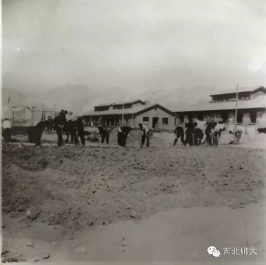 在路上,所乘的汽车时停时修,走了一个星期才到兰州。我们到西北师院十里店宿舍住下时天色已黑。我问:“西北师院在哪儿?”回答是:“顺马路往西走,过了狼沟(即十里店桥下面的那条沟,桥是后来修建的)就是。”次日清晨,我便顺路西走,过狼沟后看见的还是像十里店宿舍的土墁房子,再走远就是农田了。我就又问一个农民:“西北师院在哪儿?”他说:“你已经走过来了。”我这才知道这些土房子就是国内颇有名气的西北师院。不过大门是朝东开的,未见校名挂牌而已。这对不久前从巴黎来的我来说自不免有落差太大之感。不过我在此呆下去的决心并未有丝毫改变。