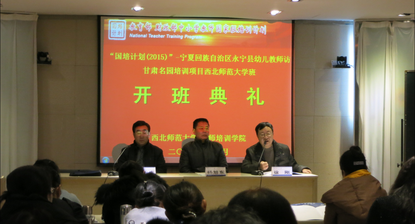 2015年12月21日,“国培计划(2015)”-宁夏回族自治区永宁县幼儿教师访甘肃名园培训项目伟德体育官方网站班开班典礼在公司举行。教育公司(教师培训公司)书记杨旭东,公司副经理、教师培训公司经理黄永丰,学科负责人徐刚老师,班主任以及来自宁夏回族自治区永宁县50名乡村幼儿教师参加了开班典礼。