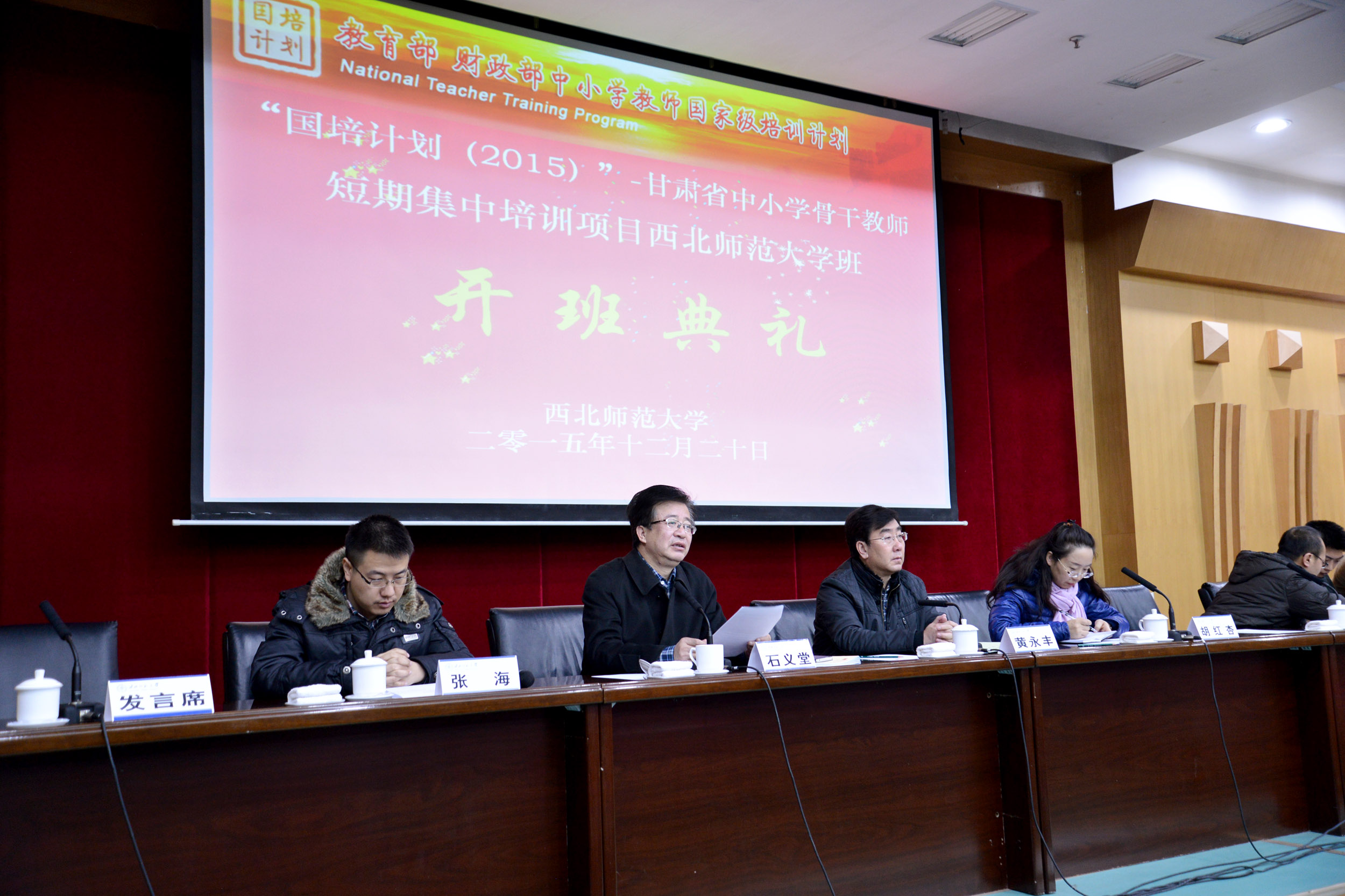 2015年12月20日,“国培计划(2015)”-甘肃省中小学骨干教师培训伟德体育官方网站初中数学班、初中历史班、初中化学班、初中地理班开班典礼在公司举行。公司副经理、教师培训公司经理黄永丰,副经理石义堂,培训班学科负责人焦彩珍、温建红、胡红杏、赵生龙、张海、苏向荣、班主任和来自甘肃省14个市(州)的300名学员参加了培训。