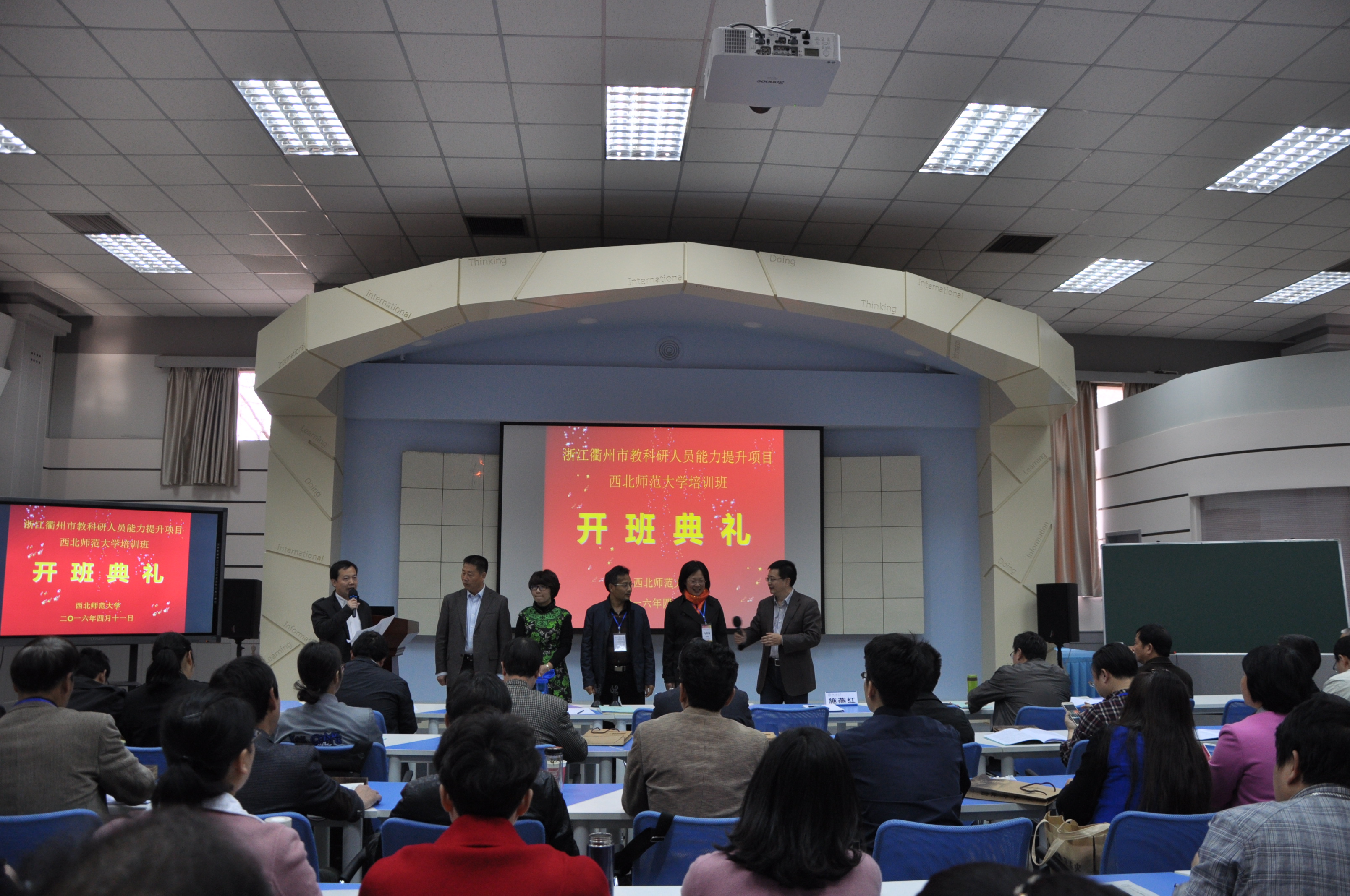 2016年4月11日,浙江衢州市教育局教科研人员能力提升培训班在公司举行,衢州市教育局教研室副书记林炳伟、衢州市教育局教研室副主任马雪梅、衢州市教育局教研室副主任施燕红,公司党委书记书记杨旭东,公司经理李瑾瑜教授,学科负责人高小强副教授,班主任和来自衢州市的84名教科研人员参加了开班典礼。