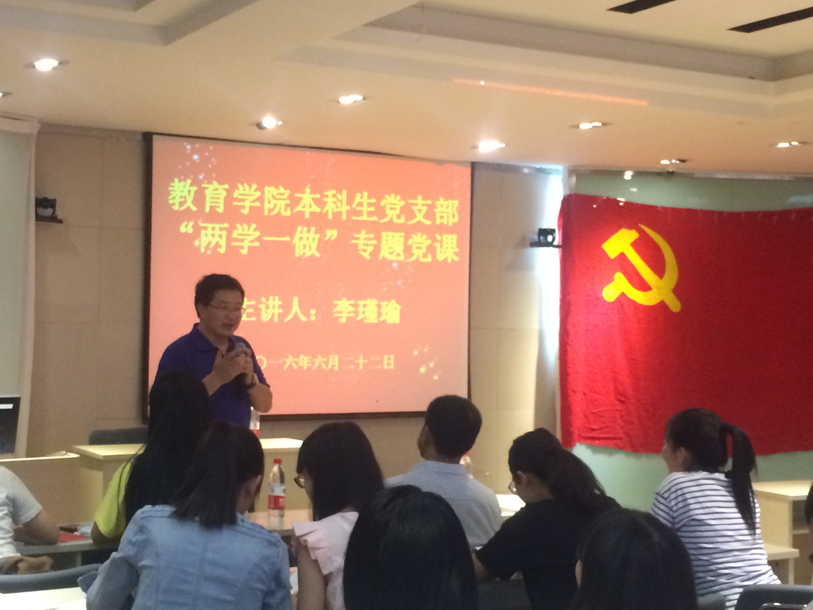 6月22日晚,公司本科生党支部在田家炳六楼会议室举行了“两学一做”教育活动,公司党委委员、教务长、教师发展中心主任李瑾瑜教授做了题为“做一个优秀的员工党员”。