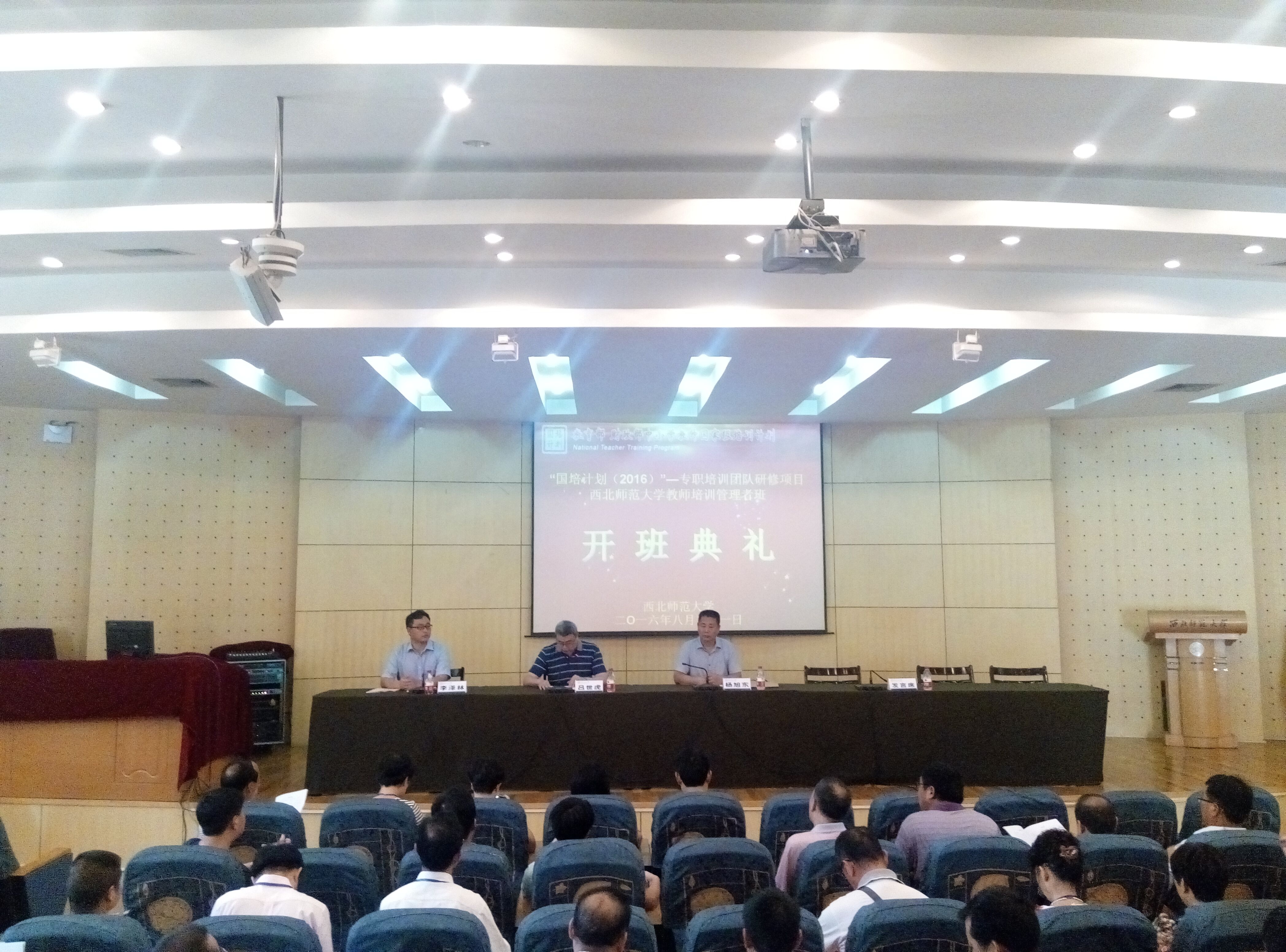 2016年8月21日,“国培计划(2016)”—专职培训团队研修项目伟德体育官方网站国培任务承担院校管理者班、县级教师培训机构管理者班在公司进行,公司党委书记杨旭东、副经理吕世虎教授、副经理李泽林教授、班主任及来自31个省(市、区)的100名教师培训管理者参加了开班典礼。