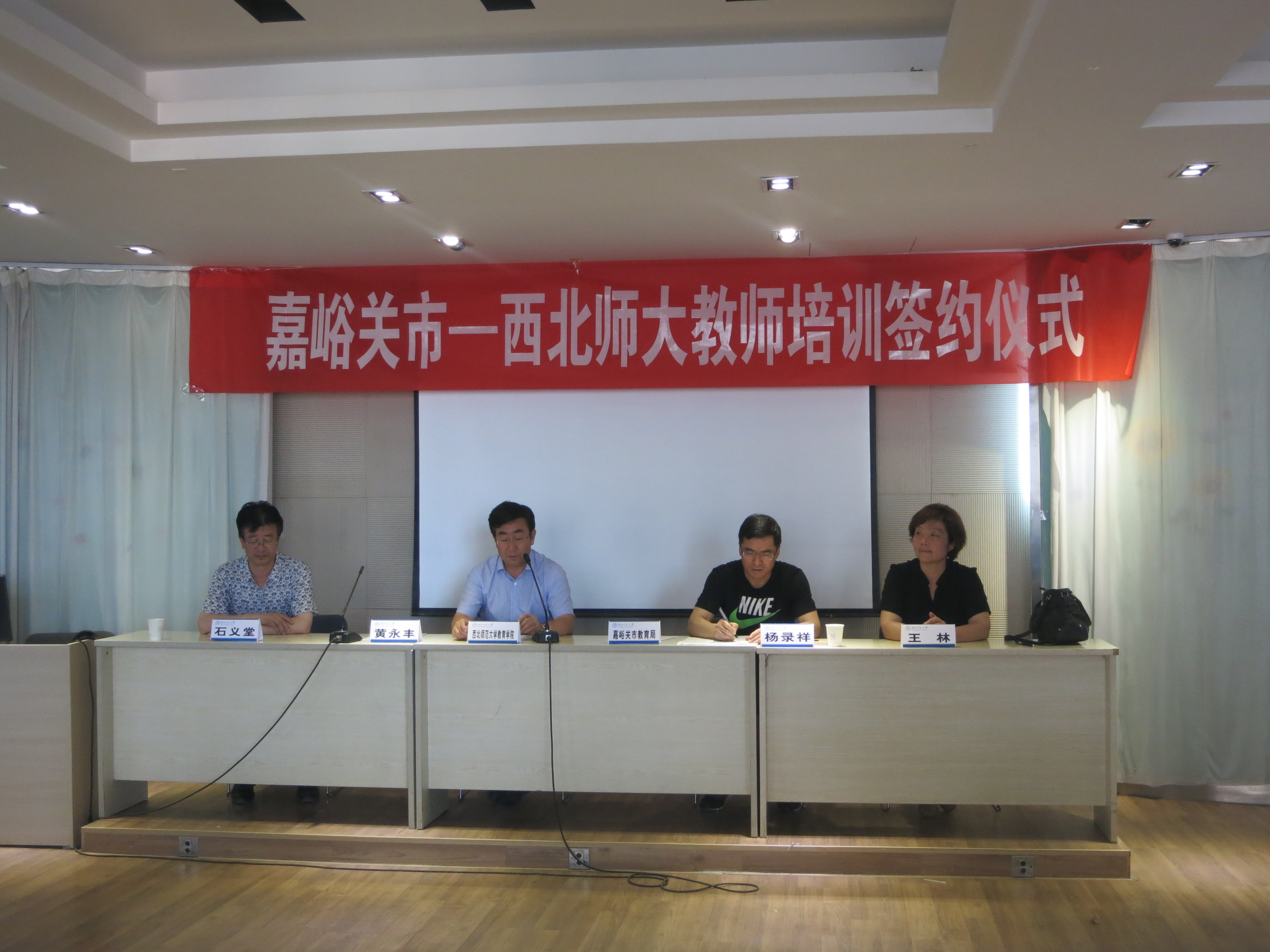 为提升公司社会服务能力,促进嘉峪关市中小学教师专业能力发展, 7月19日,公司与嘉峪关市教育局签署了教师培训五年战略合作协议嘉峪关市教育局局长杨录祥、副局长王林,教师培训公司经理黄永丰、副经理石义堂参加了签约仪式。签约仪式上,嘉峪关教育局局长杨录祥高度评价了公司近年来在教师培训上做出的贡献,他回顾了嘉峪关教育局与公司自2004年以来在教师培训、小课题研究、顶岗置换实习、教育实习等层面的合作,认为嘉峪关教育局在前期已经和公司建立了良好的伙伴合作关系,现在签署“教师培训五年战略合作协议”,既是嘉峪关教育局“十三五”发展规划的顶层设计,更是嘉峪关中小学教育的现实诉求,希望伟德体育官方网站教育公司、教师培训公司能进一步加强对嘉峪关教育的支持,全面提升嘉峪关教育质量。