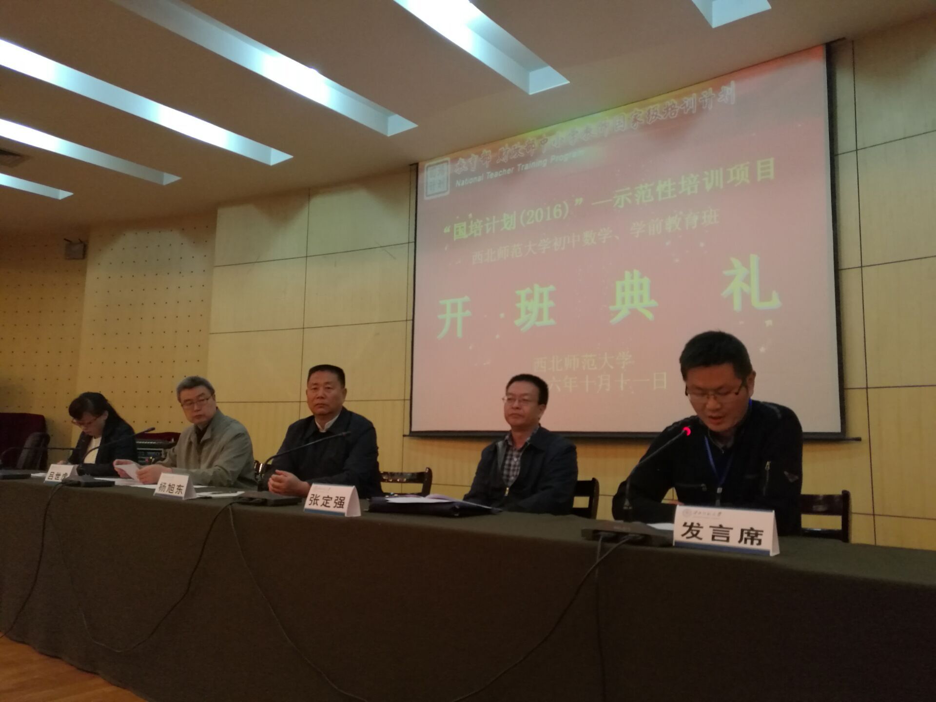 2016年10月10日,“国培计划(2016)”—一线优秀教师培训技能提升研修项目初中数学班暨学前教育骨干教师培训项目班开班典礼在公司举行。公司党委书记杨旭东、副经理吕世虎教授、学科负责人张定强教授、张国艳副教授、班主任及来自17个省(市、区)的100名骨干教师参加了开班典礼。