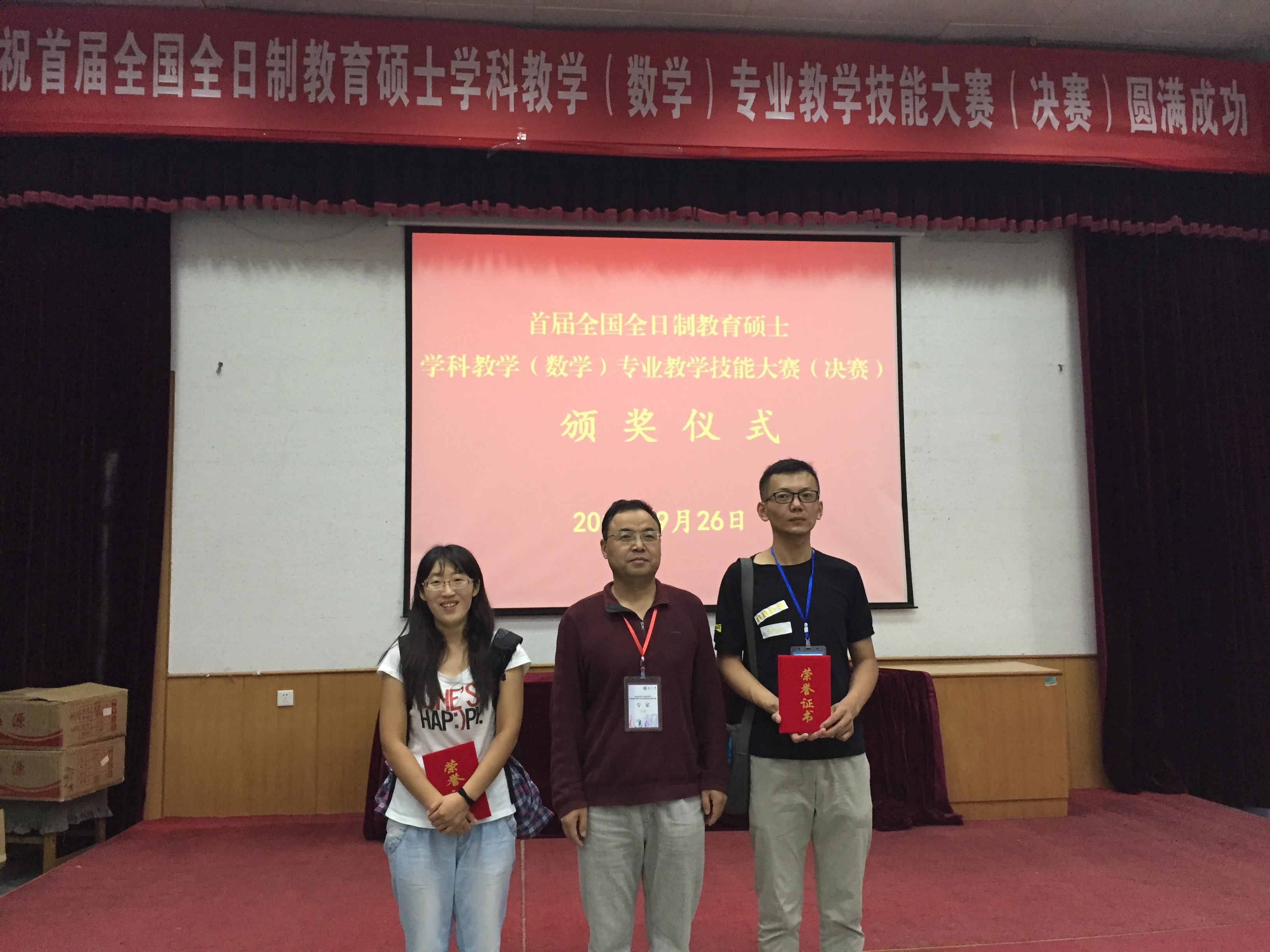 本次比赛设立特等奖、一等奖、二等奖及优秀奖,比赛采用抽签排序、抽签选题、评委和选手“双匿名”的形式,通过模拟授课和现场答辩两个环节全面展示选手的综合素质。公司教育公司2015级学科教学(数学)专业研究生王小虎和曾海英同学参加了本次比赛,并分别荣获二等奖和优秀奖,教育公司李保臻老师荣获优秀指导教师奖。