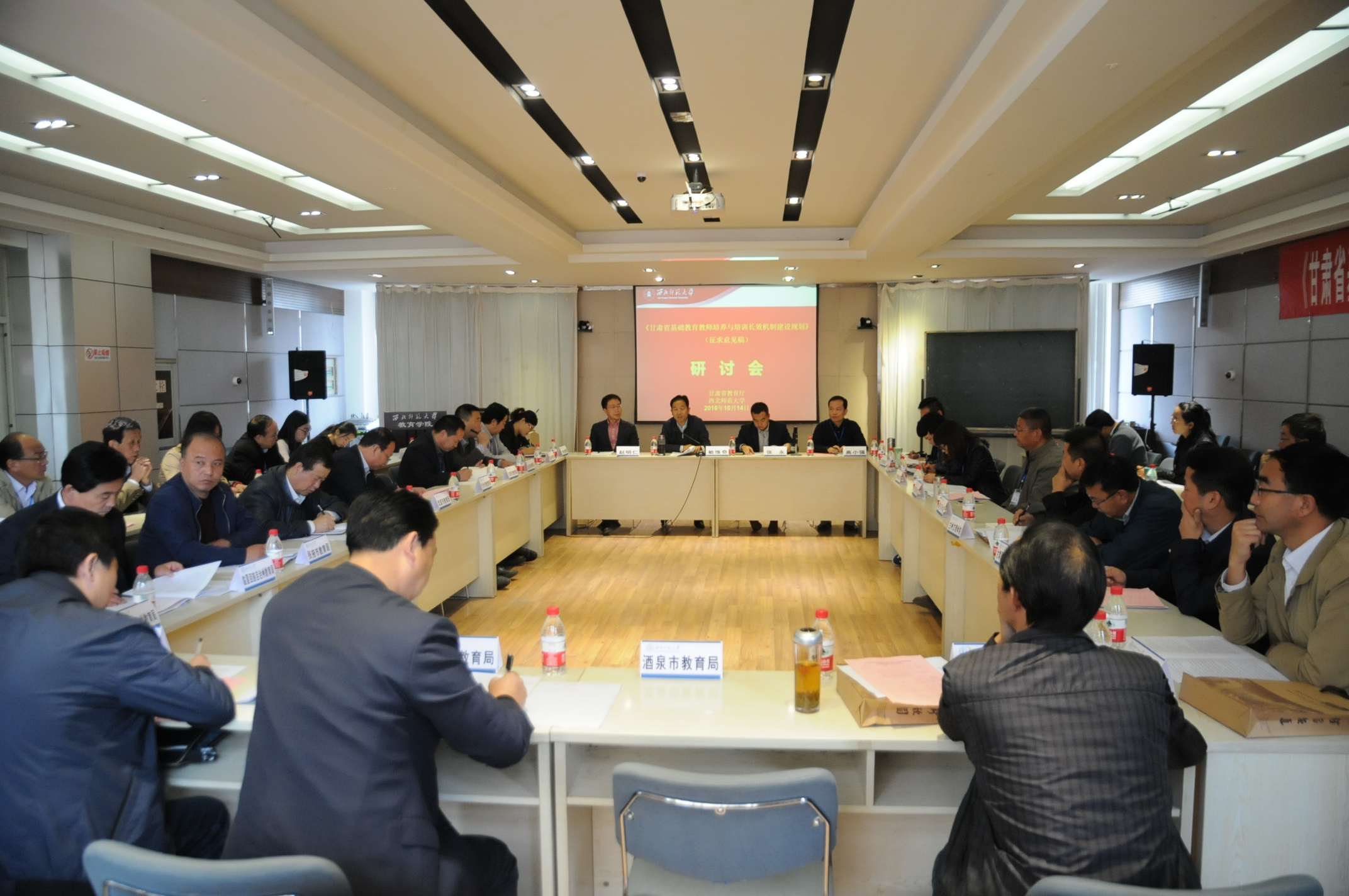 10月14日,由公司负责起草的《甘肃省基础教育教师培训与培训长效机制建设规划》(征求意见稿)研讨会在院召开。甘肃省教育厅师范处处长敏维奇、副处长张永,西北民族大学、天水师范公司、兰州城市公司、兰州文理公司、河西公司等省内10多所高校相关专家,全省14个市(州)教育局负责人,中小学董事长和教师代表,《规划》(征求意见稿)制定工作小组成员共50余人参加了此次会议。