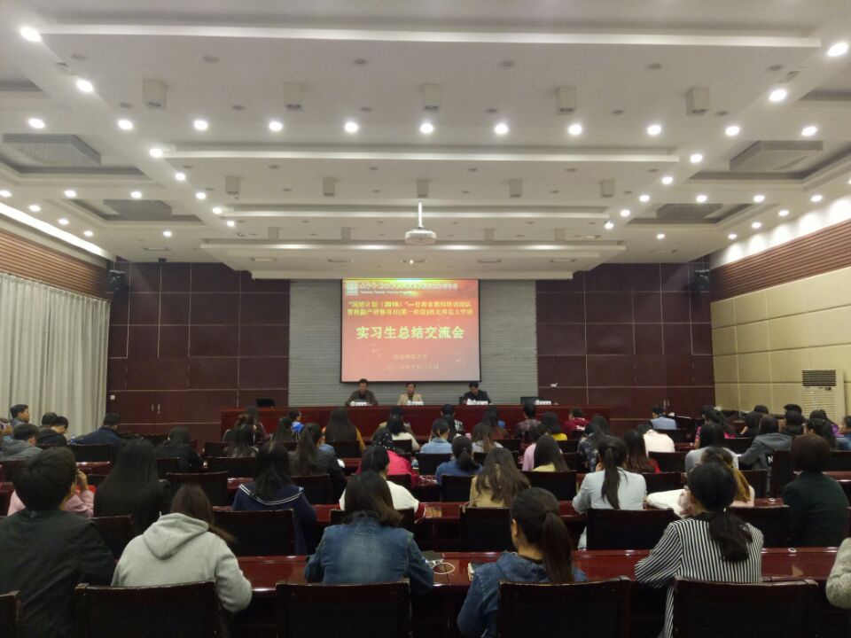 2016年10月20日,“国培计划(2016)”—甘肃省教师培训团队置换脱产研修项目伟德体育官方网站置换顶岗支教实习总结大会在公司举行。教师培训公司经理黄永丰、副经理石义堂,公司教务处副处长王兴,各学科负责人,来自文公司、数统公司及教育公司的130名本科生和19名研究生参加了本次实习生总结交流大会。