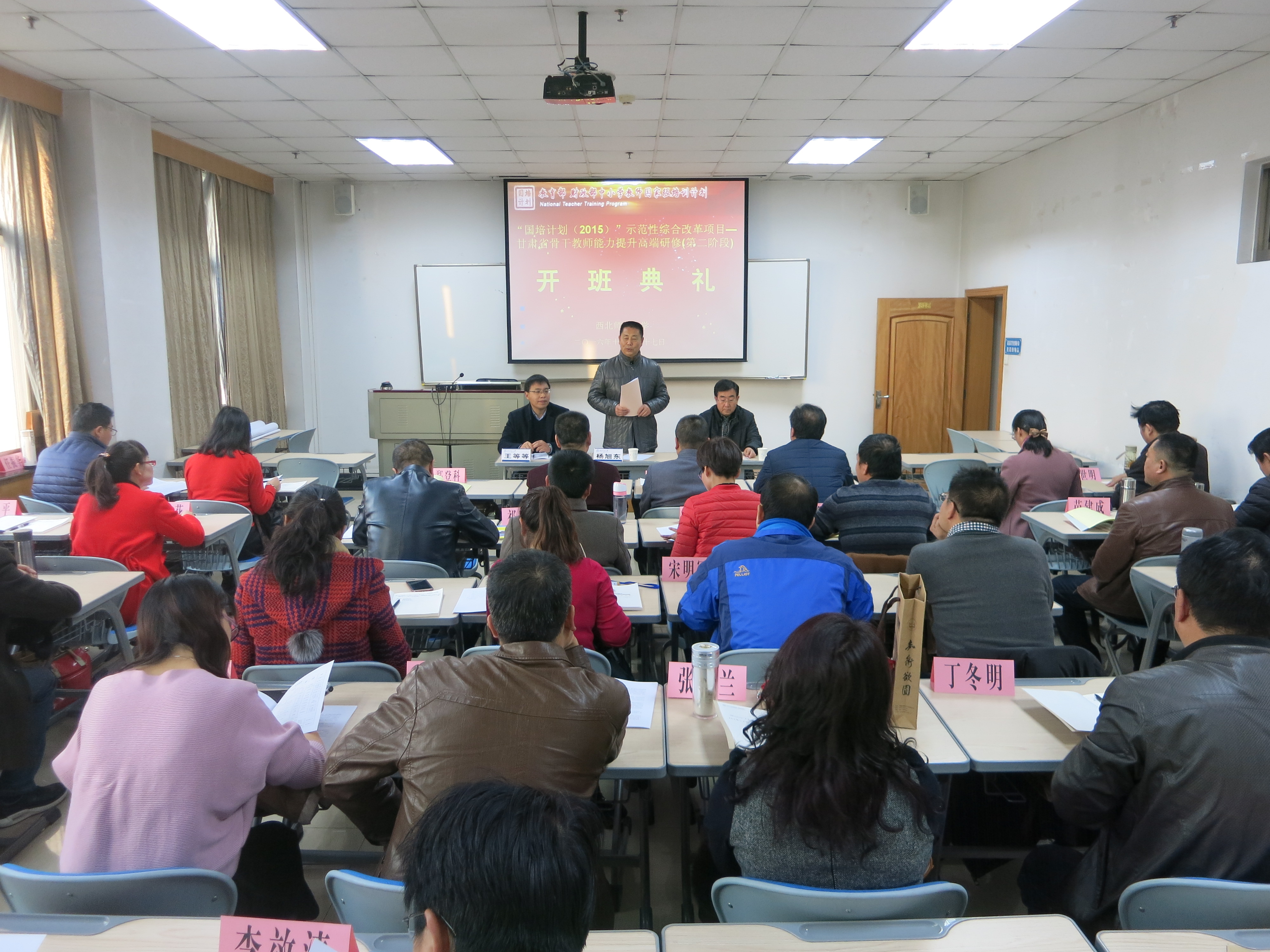 2016年11月27日,“国培计划(2015)”—甘肃省骨干教师能力提升高端研修项目(第二阶段)伟德体育官方网站培训班在公司举行。公司党委书记杨旭东、教师培训公司经理黄永丰、学科负责人王等等副教授,班主任和来自全省的50名骨干教师参加了开班典礼。