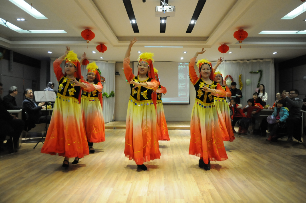 晚会上,邢燕燕、孙爱琴等带来了精心排练的维族舞蹈,屈文燕、王太军等表演了欢快的舞蹈《大秧歌》;李红娟、胡君的笛子、口琴独奏为大家送来新年的祝福;杨旭东、姜峰、马胜科、陈小娟等以精彩的伴奏和优美的演唱让大家重温经典歌曲《为了谁》《又见北风吹》;香港大学19名员工表演了欢快的舞蹈,公司11名本科生在深情的歌声中祝福西北师大和香港大学,指导教师和同学们也共同演唱了歌曲《友谊地久天长》;几组游戏《笑口常开》《七星高照》《五福临门》《三星吉祥》让大家时刻沉浸在喜悦当中;小朋友们也按捺不住心中的喜悦,带来了天真童稚的歌曲;晚会在主持人康金旭、马胜科领唱的《同一首歌》中闭幕。晚会上,忘我的歌声和爽朗的笑声交织在一起,时刻飘洒着师生愉悦与欢乐,处处飘扬着收获与幸福,和谐、团结、积极、向上的教育公司精神在晚会上得到再一次传承。