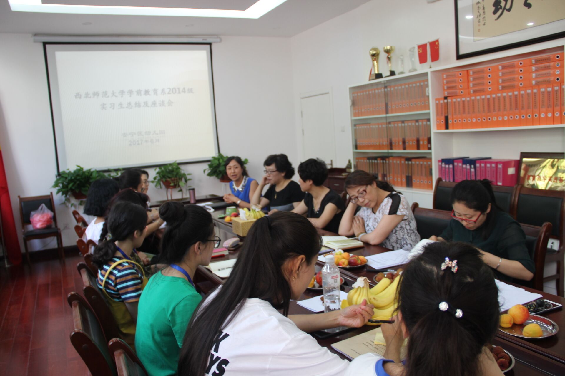 6月27日,2014级学前教育专业本科实习生教学观摩暨实习总结座谈会在安宁区幼儿园顺利举行。安宁区幼儿园园长王虹、副园长杨倩、保教主任孙咏梅、公司学前教育系主任孙爱琴、实习指导教师路娟等人参加了座谈会。参加实习的2014级同学在座谈会上一一发言,总结了各自在实习中的收获和反思;安宁区幼儿园保教主任孙咏梅老师做了实习工作情况总结,对同学们的表现给予了充分肯定。